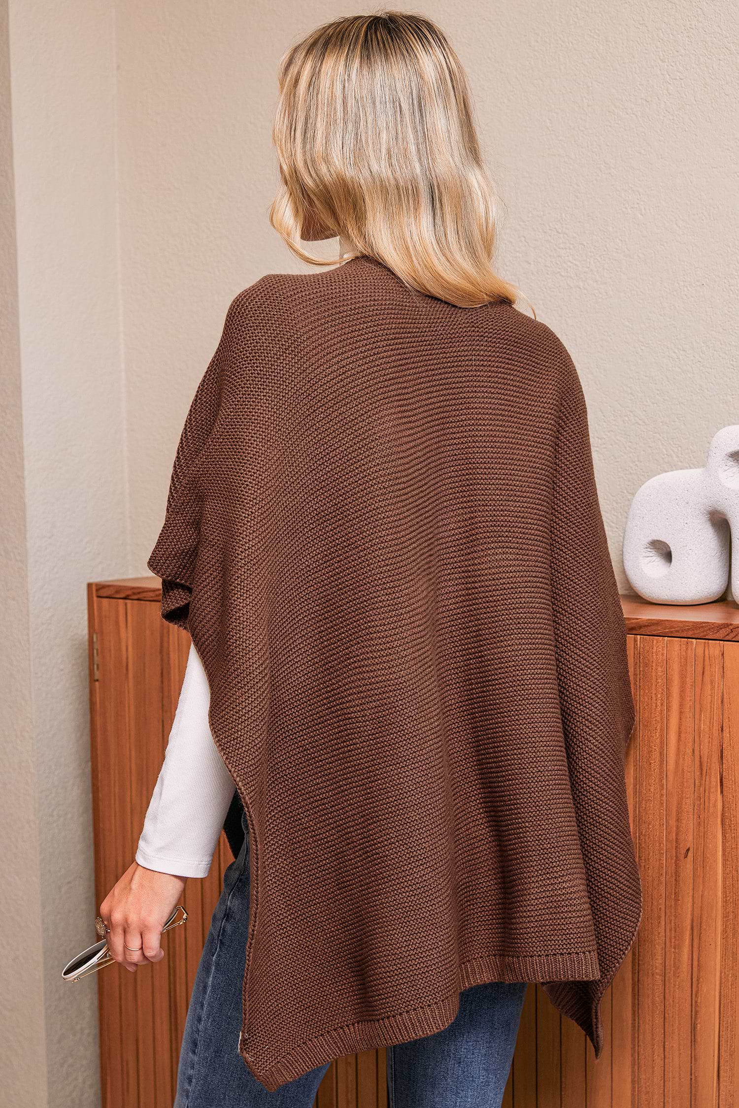 El cárdigan Cardamom Latte Brown es una elegante prenda para combinar con cualquier look de otoño. Su escote en V sin mangas y lazada en la cintura crean un look versátil y favorecedor, perfecto para los días fríos.