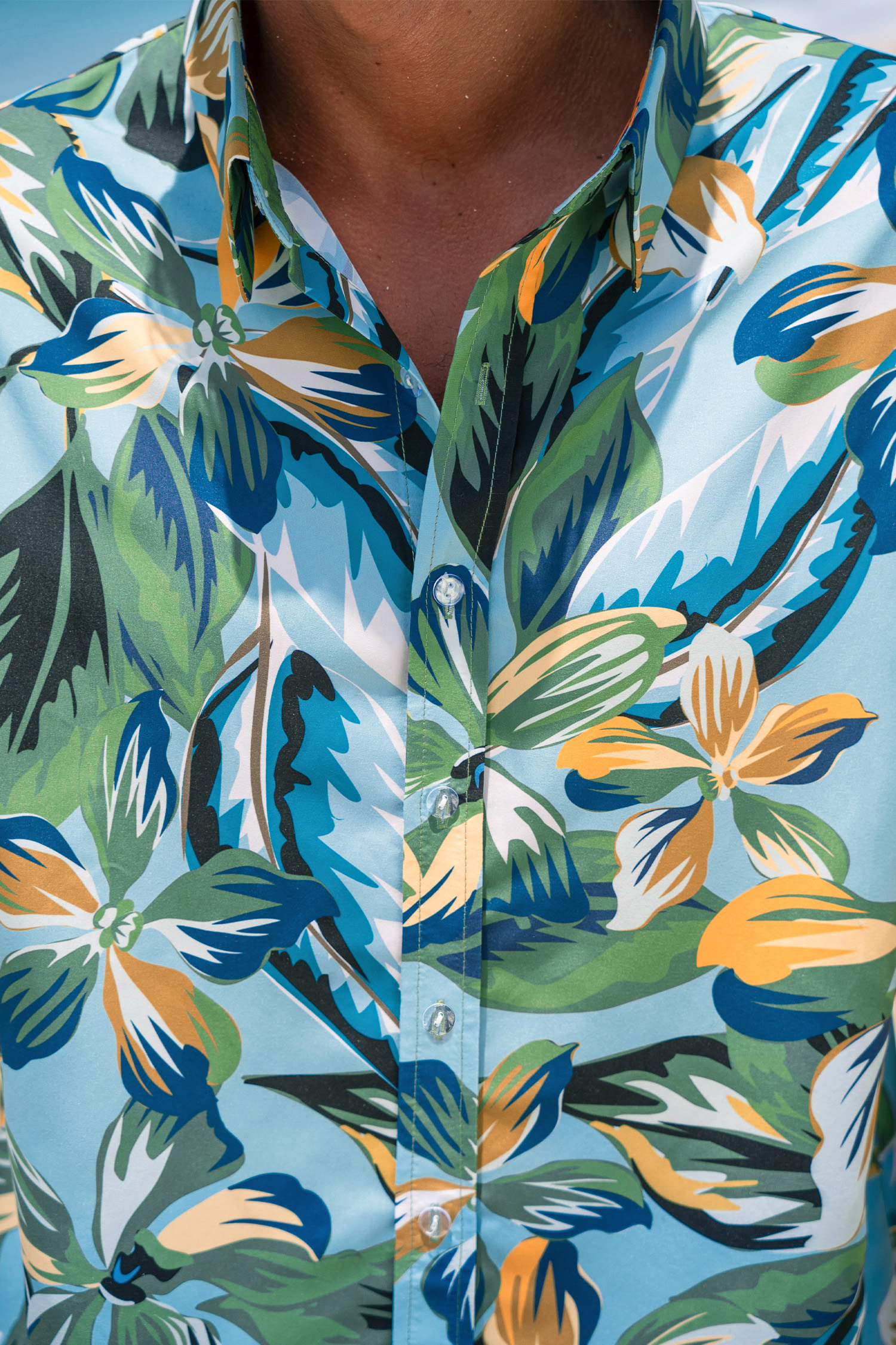 La camisa floral Caribbean Vibes te trae la energía isleña y relajada a tu armario. Con cuello, mangas cortas y botones al frente, es perfecta para días casuales de playa o salidas nocturnas.