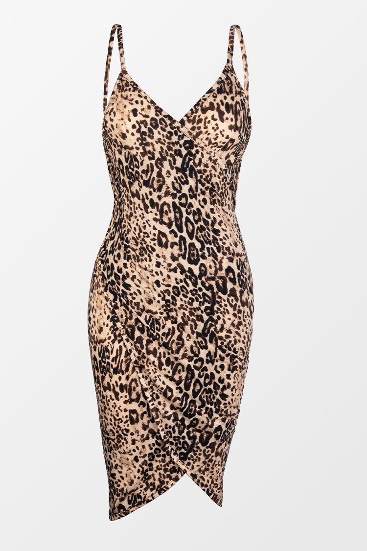 Cover Up Escote V Espalda abierta Estampado leopardo