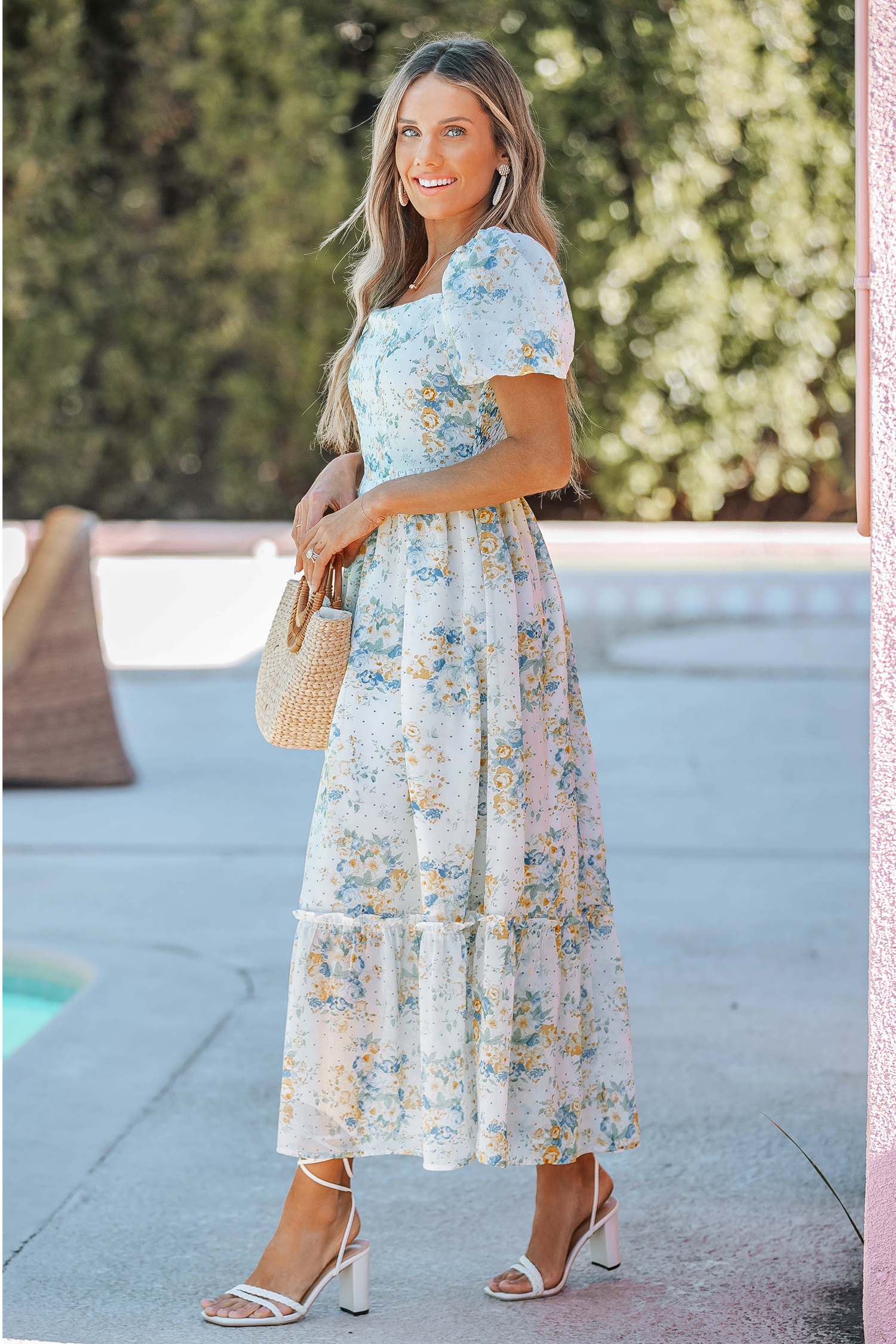Vestido largo con estampado floral de clementina