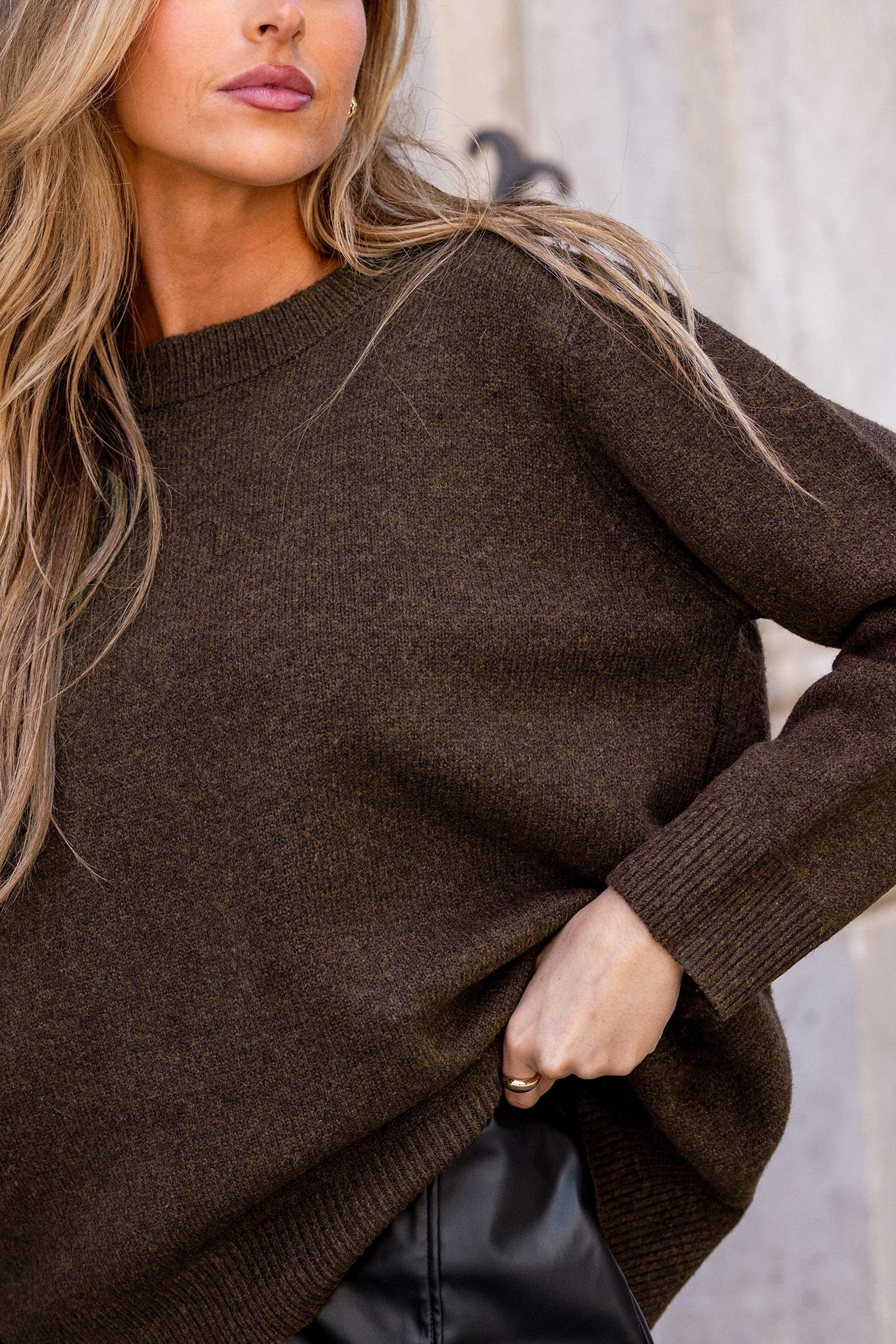 El suéter Cocoa Comfort Brown es cálido y acogedor, ¡e invita a la relajación! Su cuello redondo y mangas largas lo hacen perfecto para usar en capas en días frescos o para combinar con tus conjuntos de otoño favoritos.