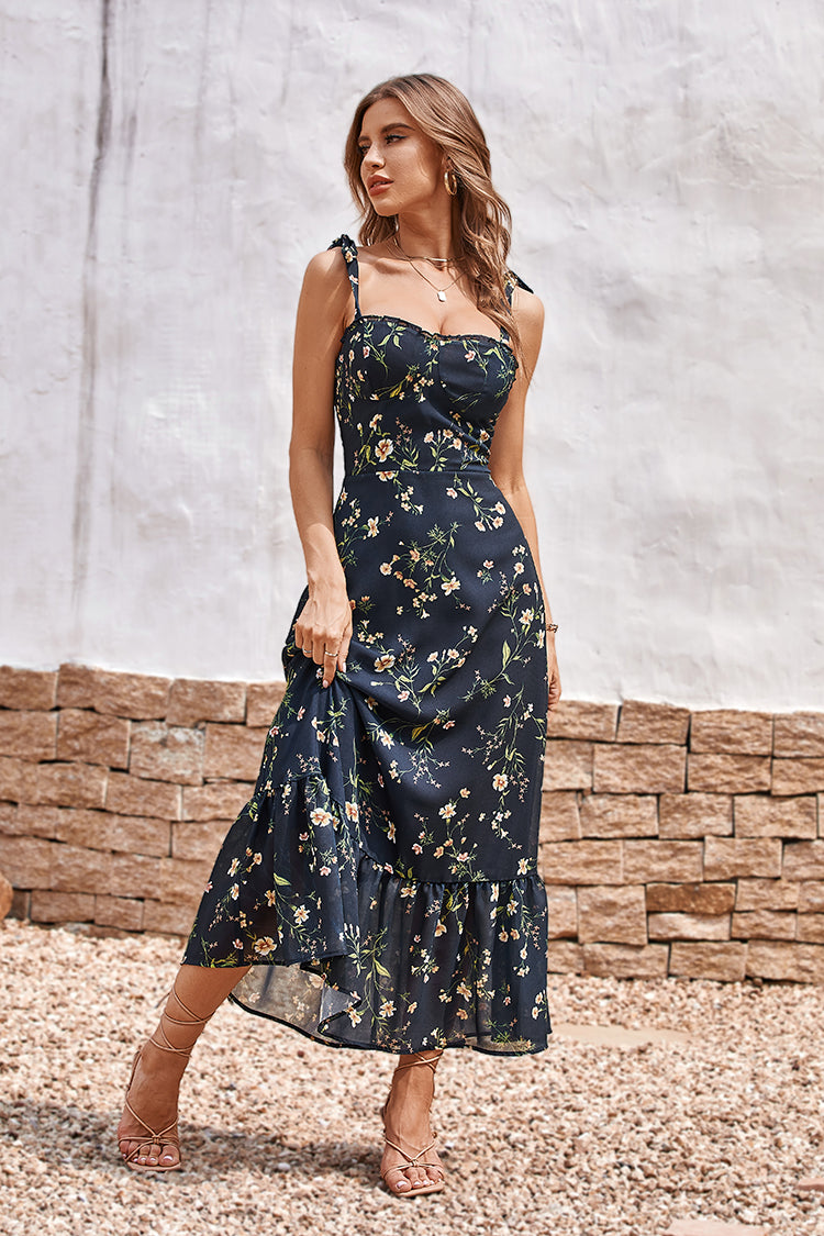Cofete Vestido de Tea length en forma de A y con adornos de frunces