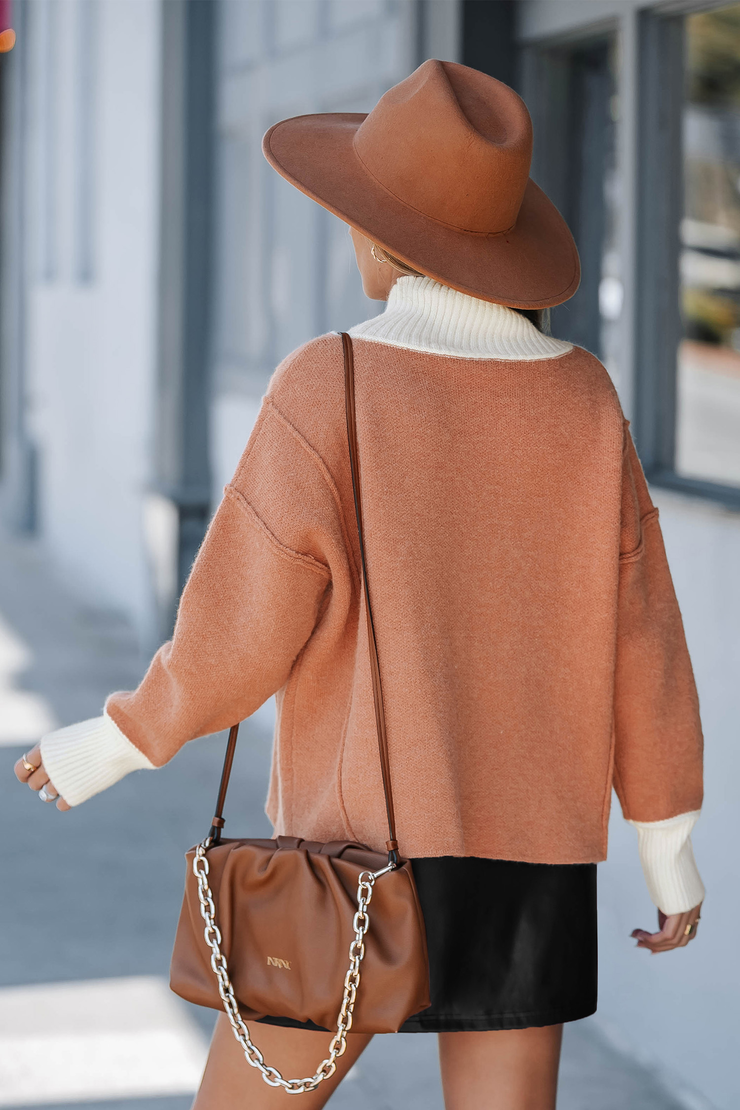 Suéter de punto de manga larga con cuello alto y bloques de colores de otoño