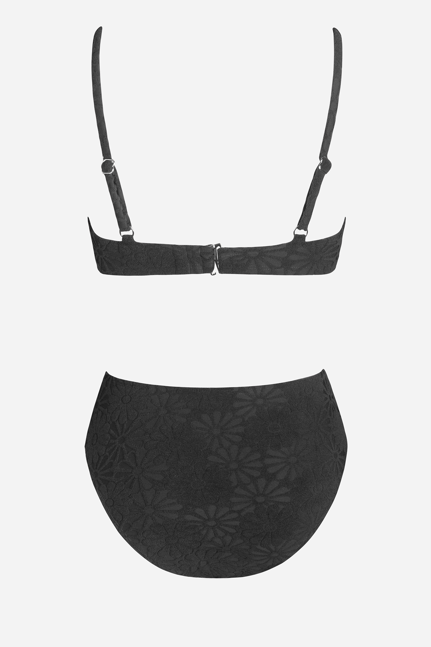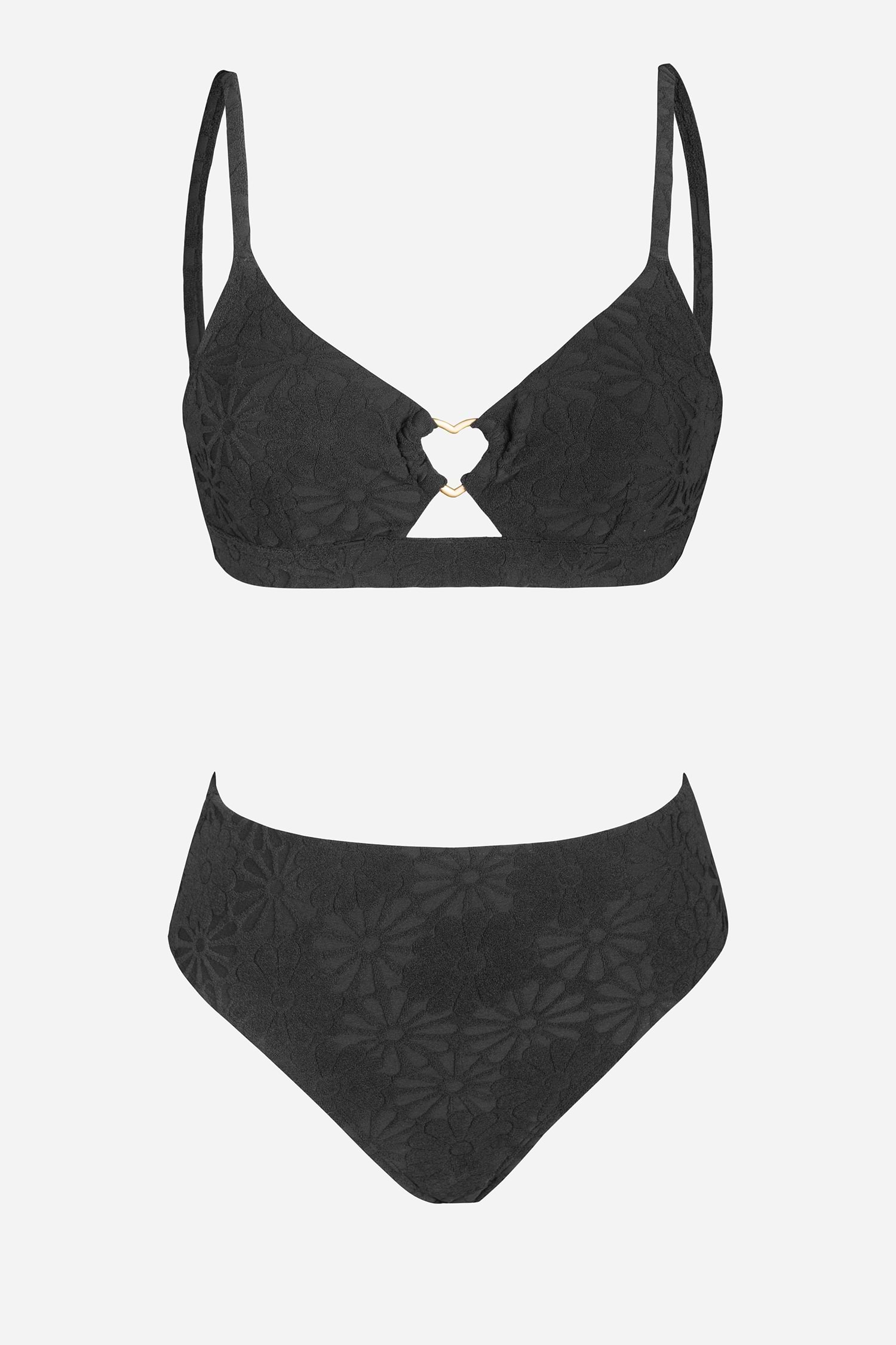 Conjunto de Bikini con Anillo de Corazón Floral Texturizado y Braguita de Cintura Media