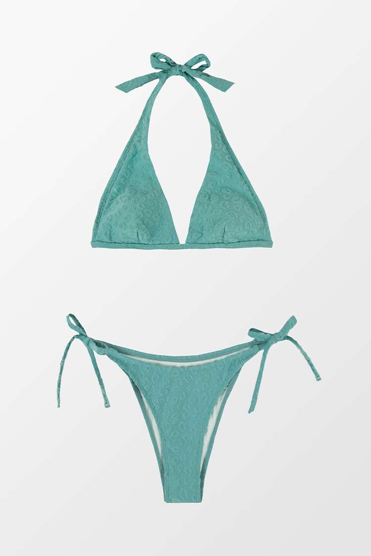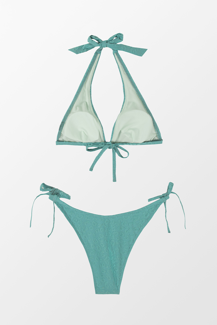 Conjunto de Bikini de Top Halter de Jacquard de Leopardo