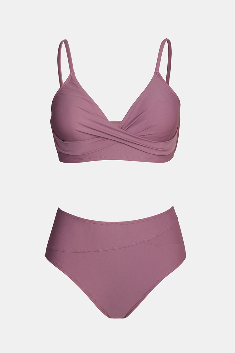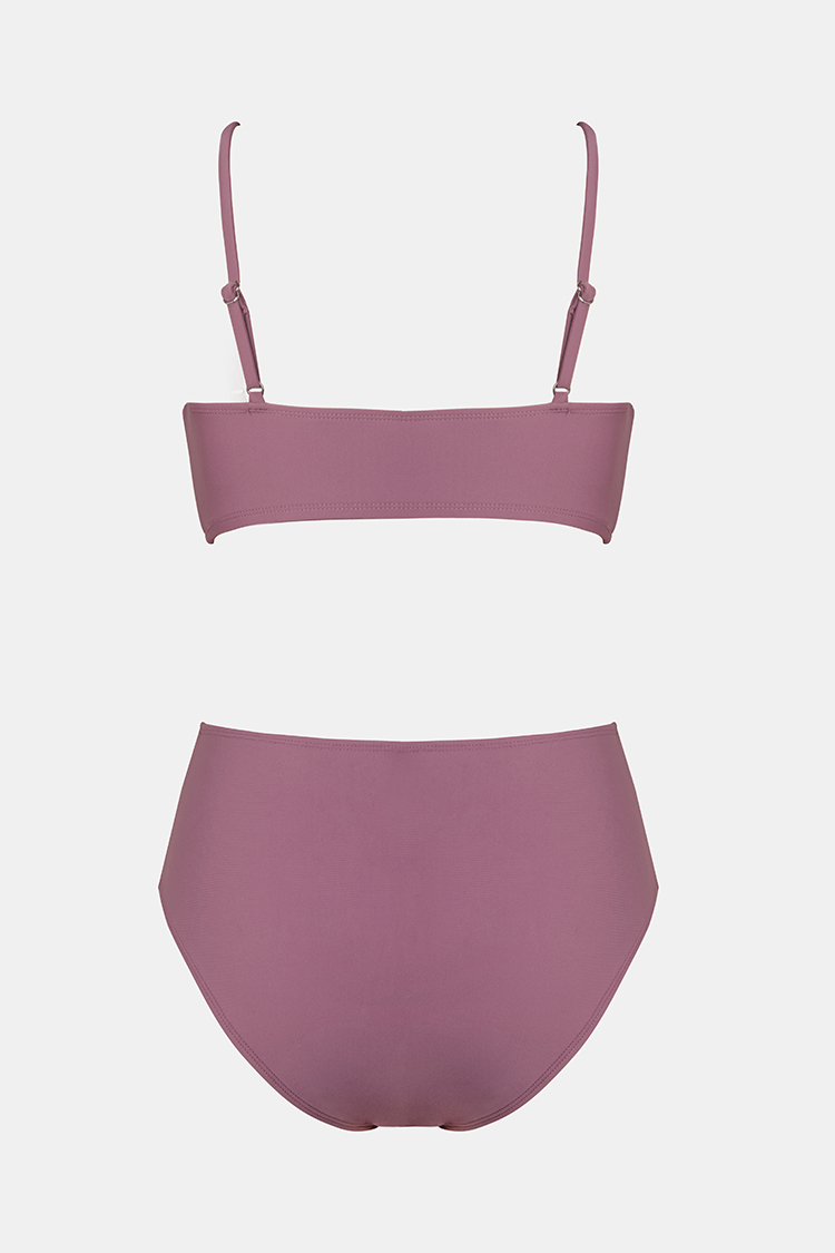 Conjunto de Bikini Morado con Tirantes y Cintura Alta Empalmada
