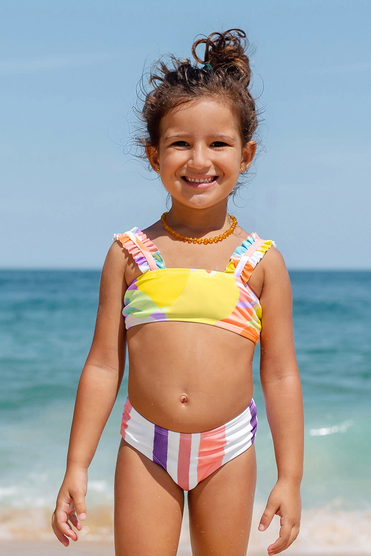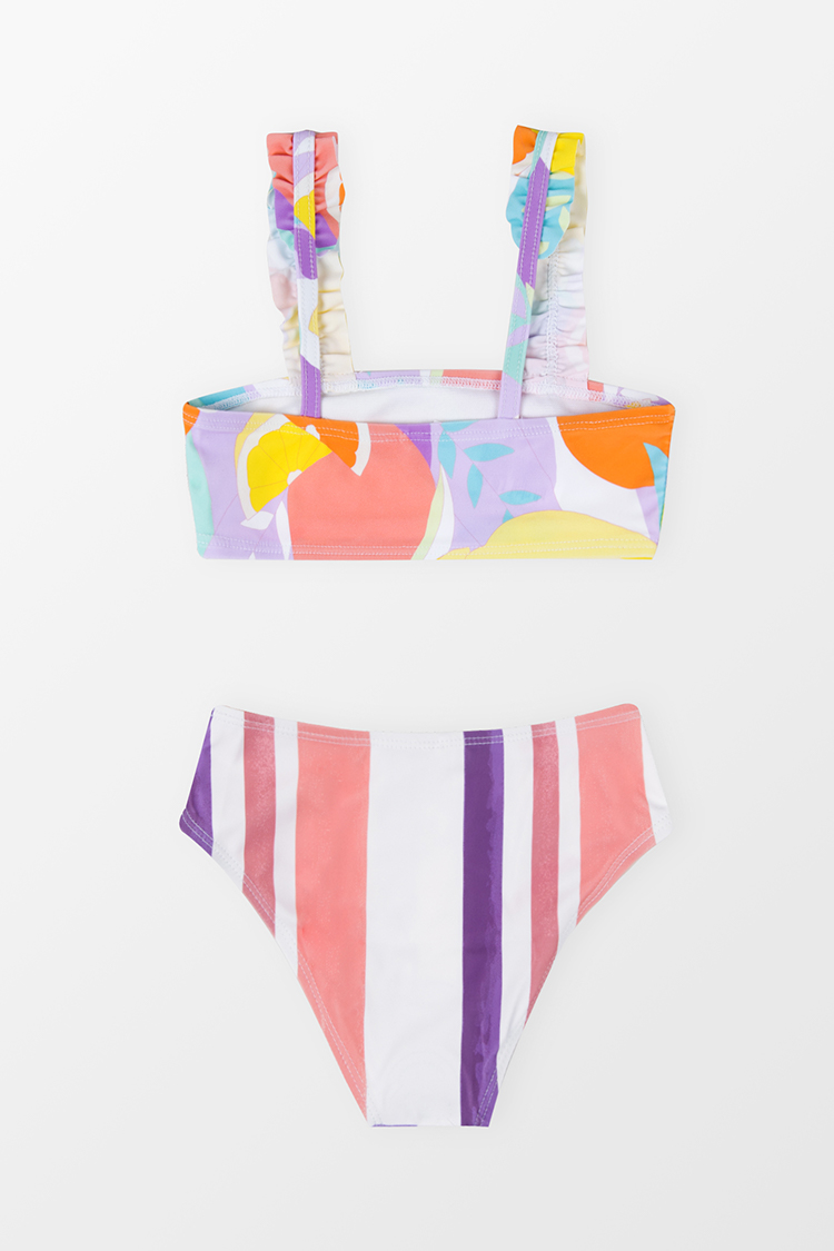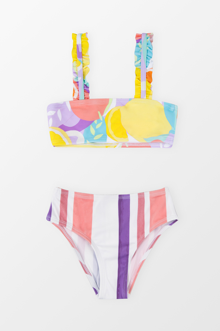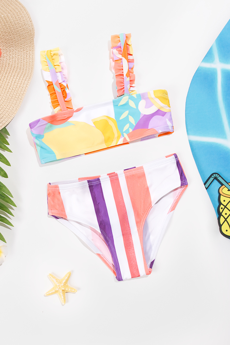 Conjunto de Bikini de Rayas Escénicas con Volantes para Niña