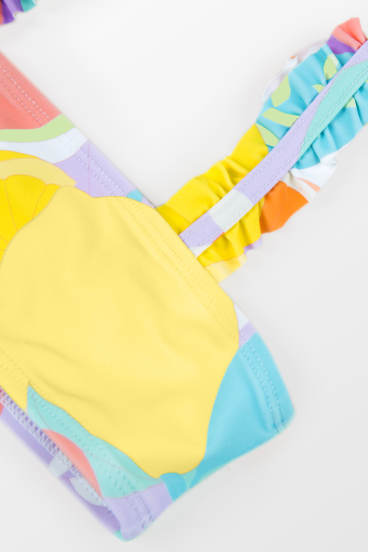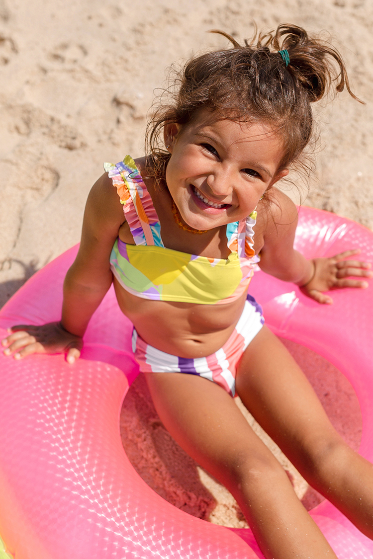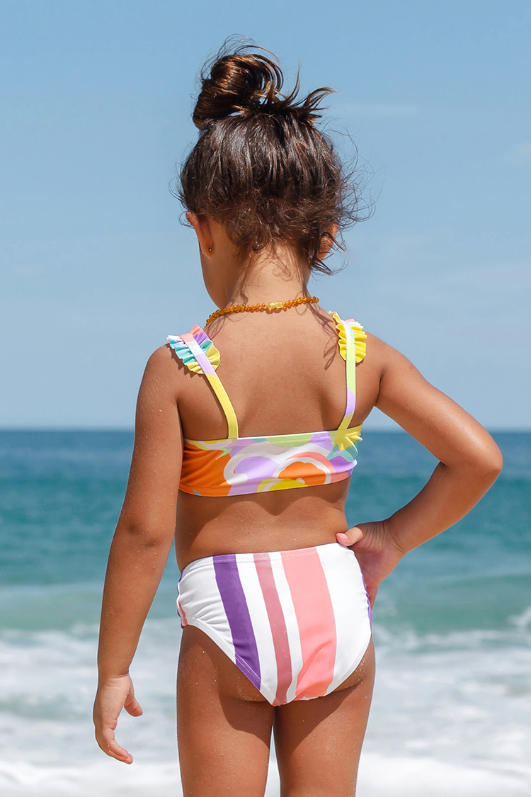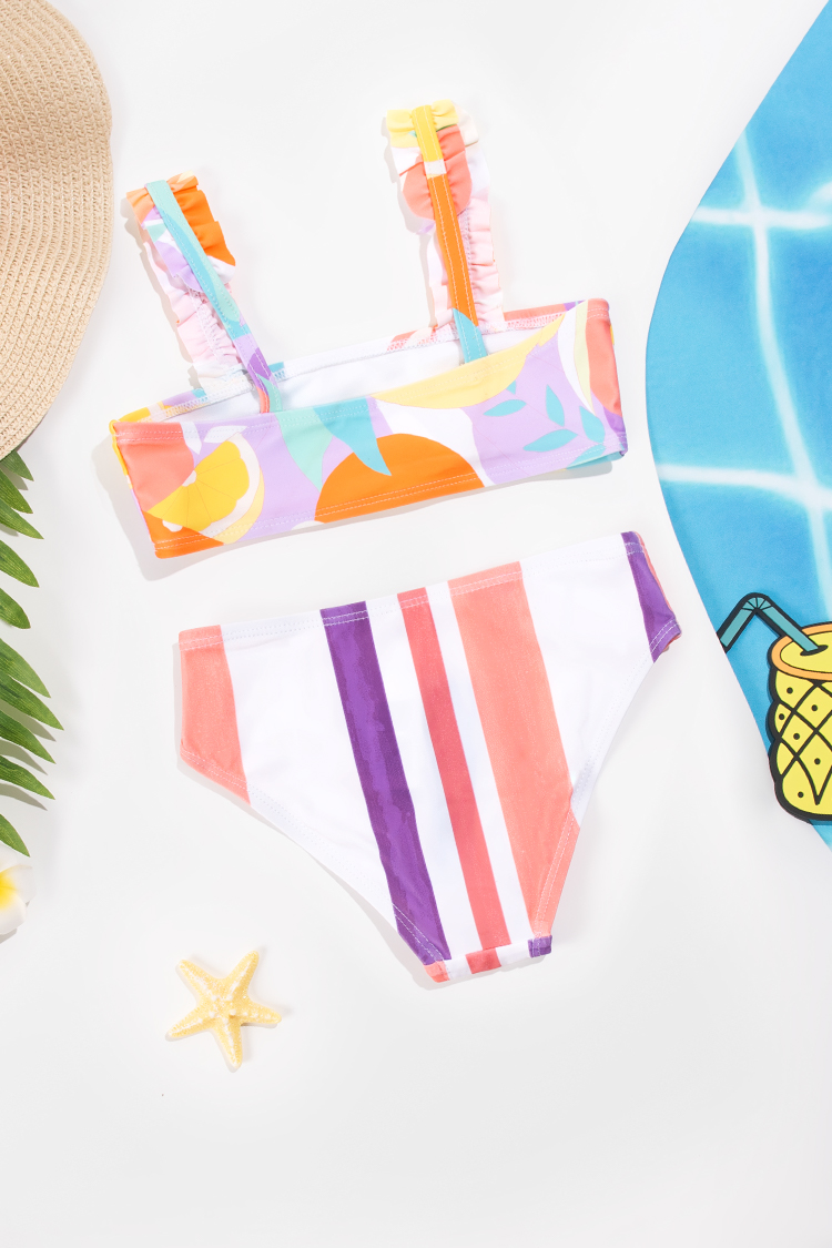 Conjunto de Bikini de Rayas Escénicas con Volantes para Niña
