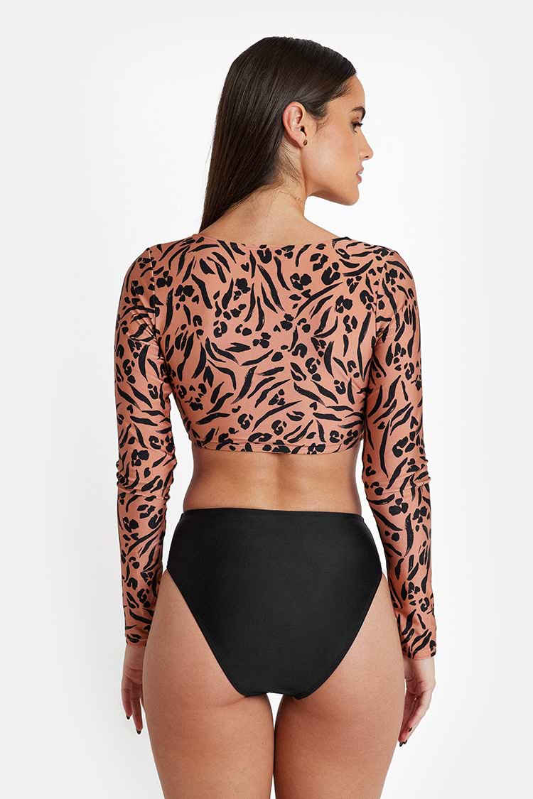 Conjunto de bikini Top con mangas largas Cintura alta con frente V