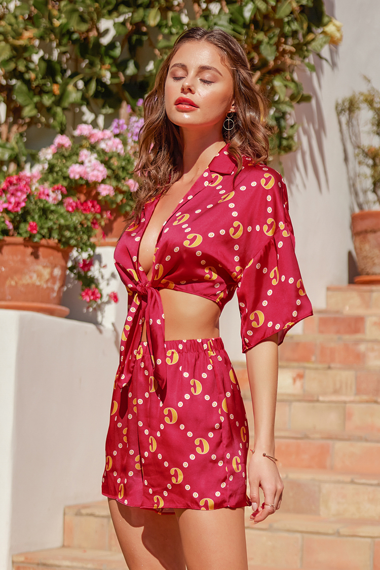 InicioConjunto de Cover Up rojo con escote V
