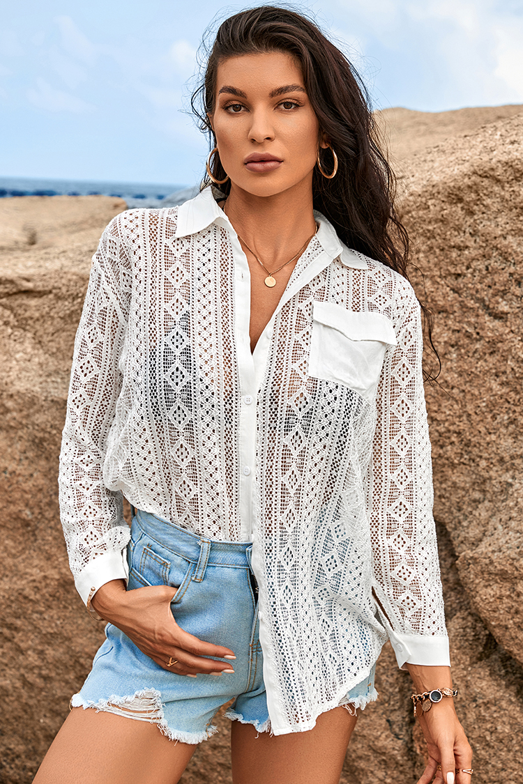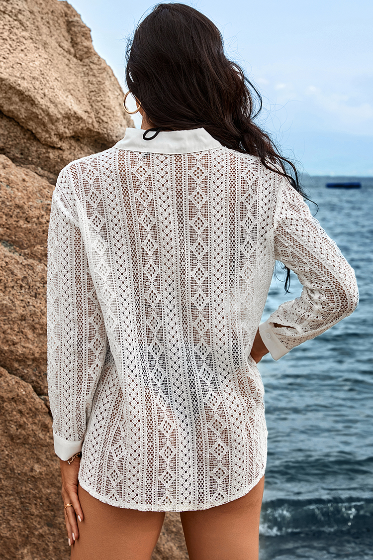 Cover Up Cuello camisero Recortes Ribetes de encaje