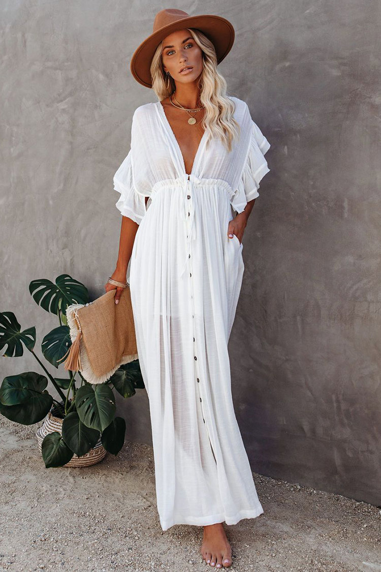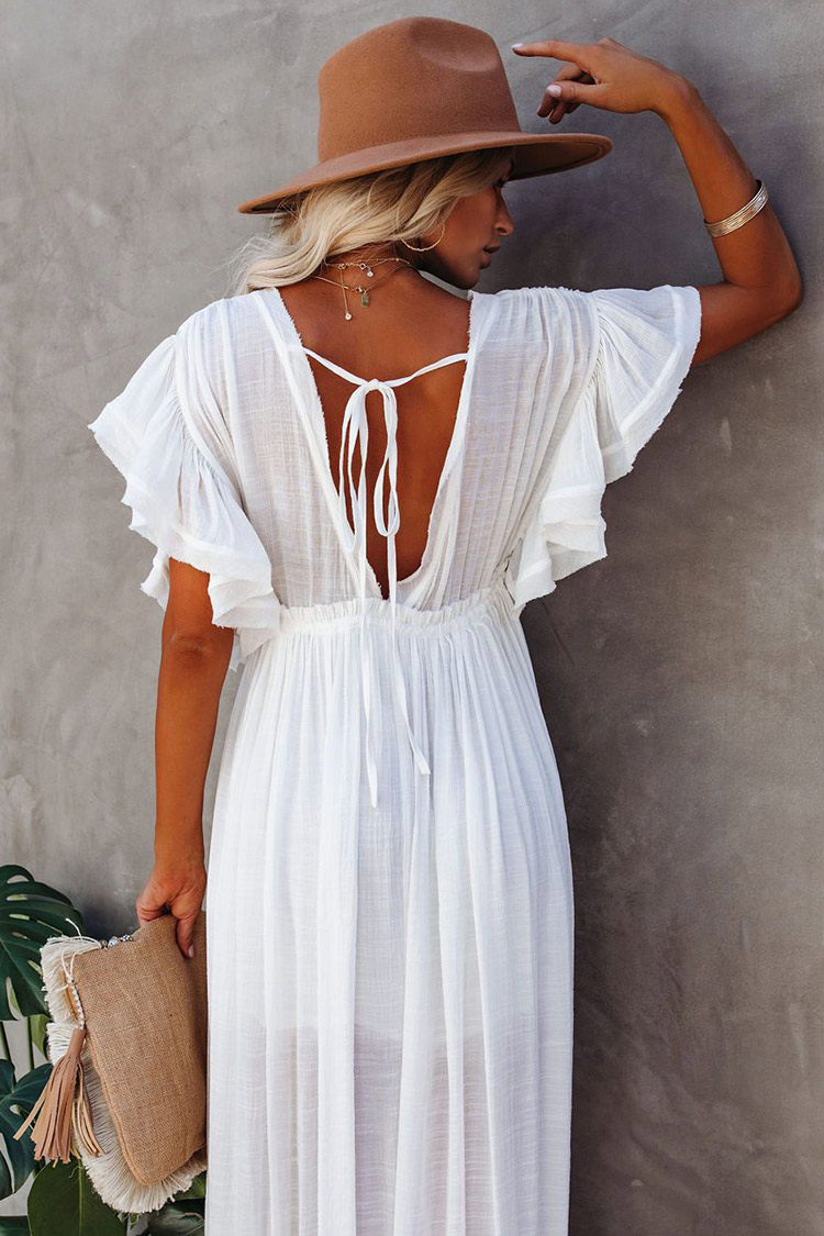 Cover up de Espalda Abierta con Volantes en Forma de A