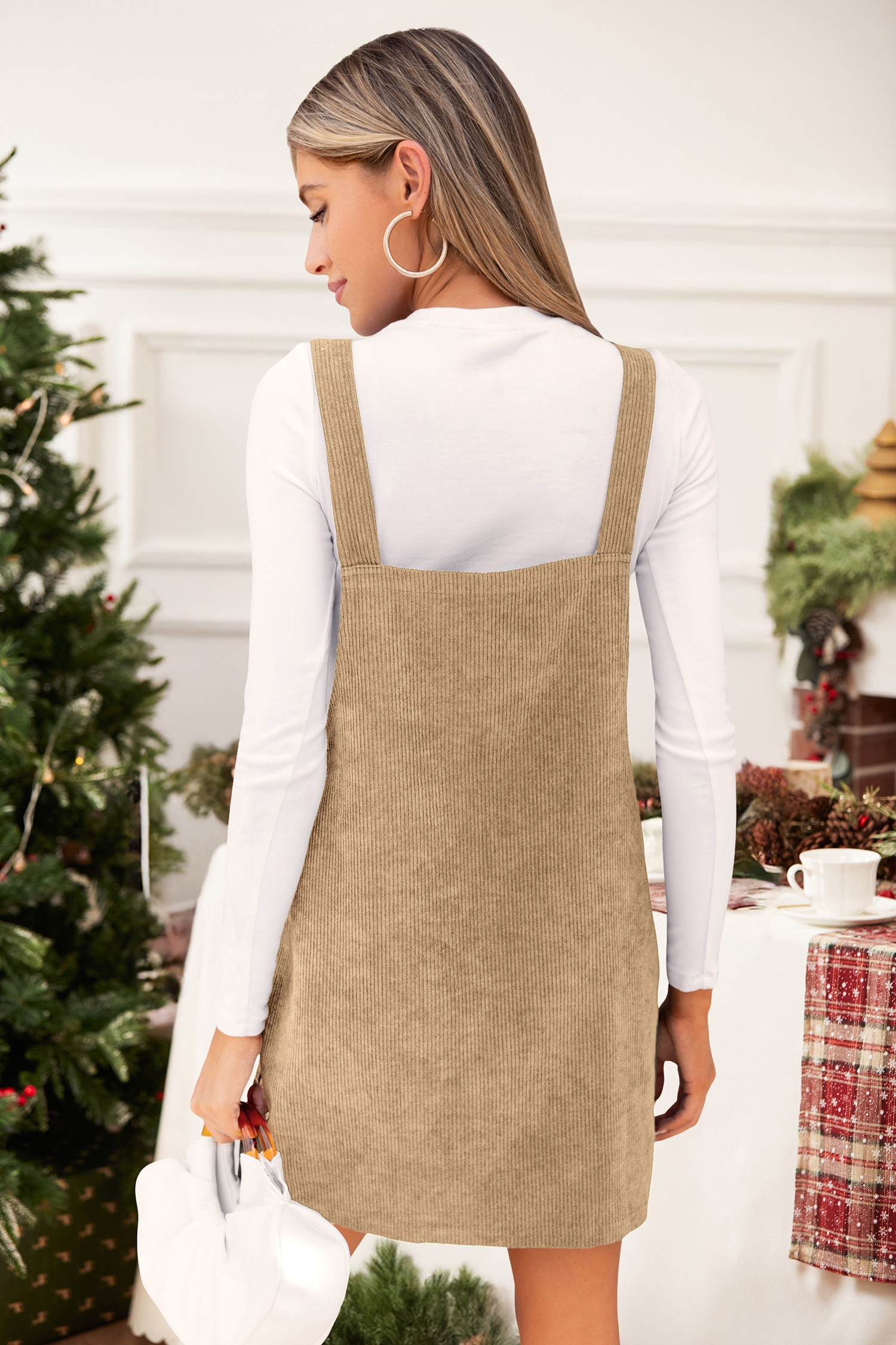 El minivestido beige Crisp Breeze es clásico y perfecto para combinar con otras prendas. Con escote cuadrado, diseño sin mangas, bolsillo delantero y largo mini, es perfecto para el otoño.