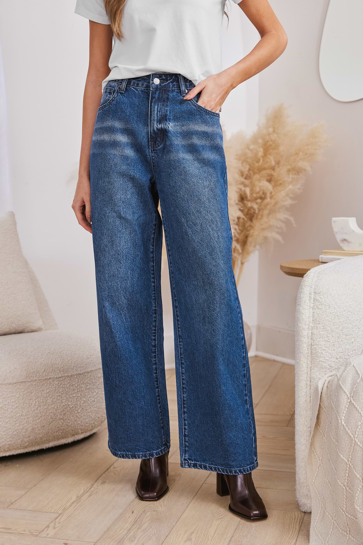 InicioPantalones vaqueros de pierna recta de mezclilla