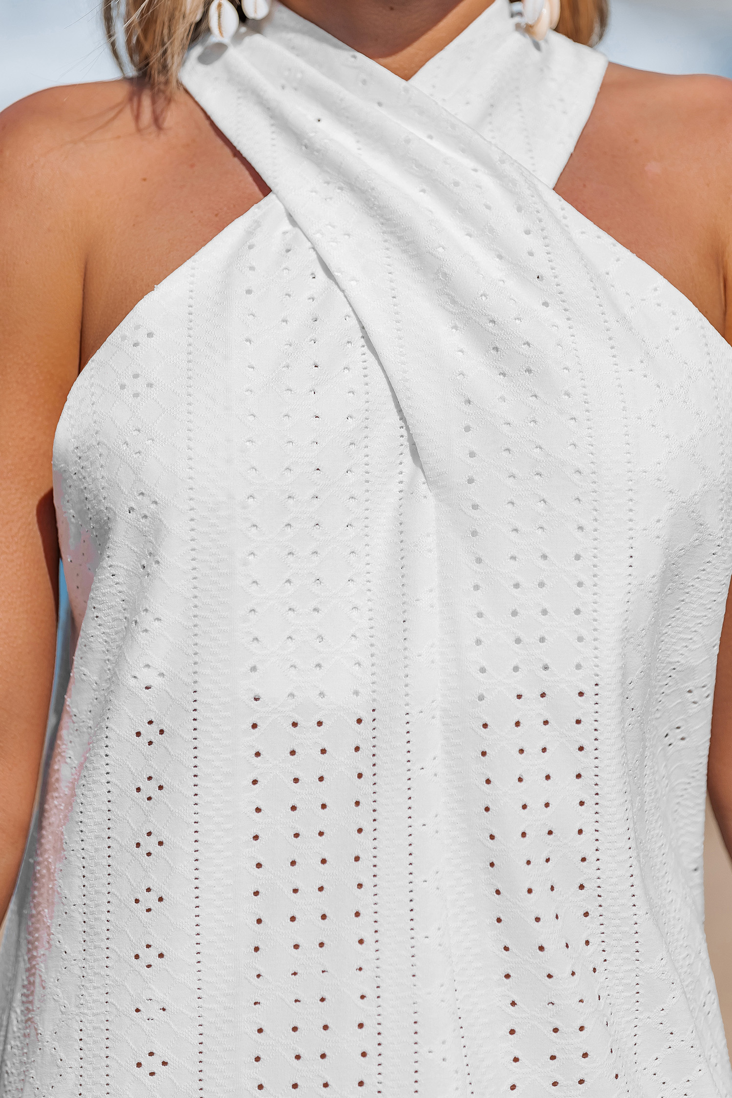 Elegante minivestido blanco con ojales