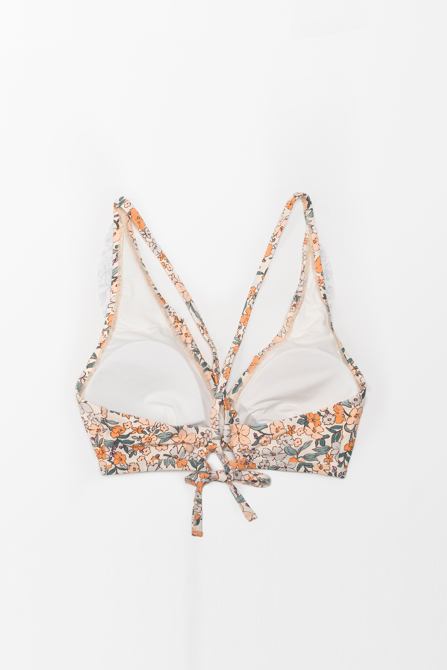 InicioTop de bikini de talla grande con sobrepelliz sintético y volantes