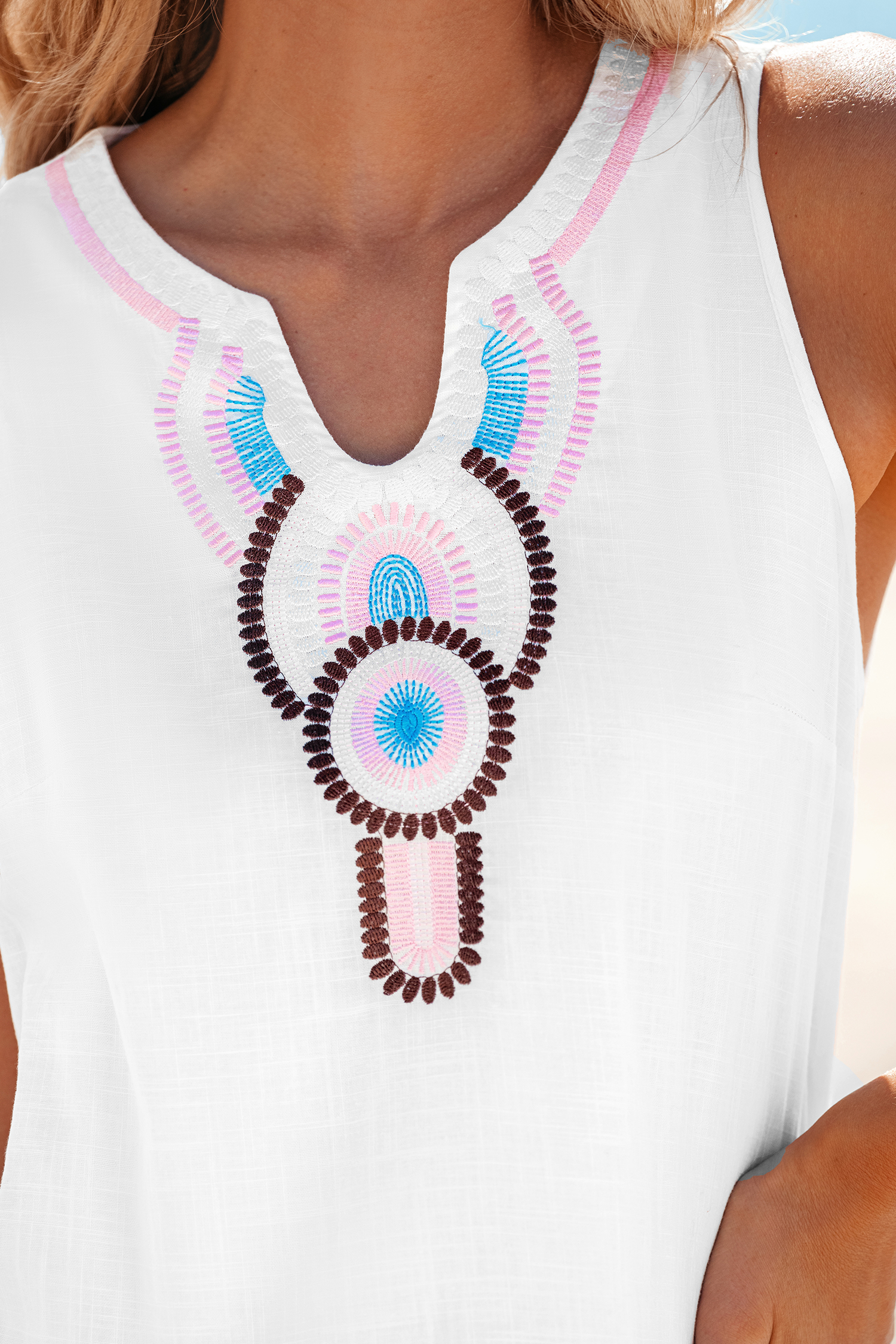 Minivestido bordado con cuello redondo