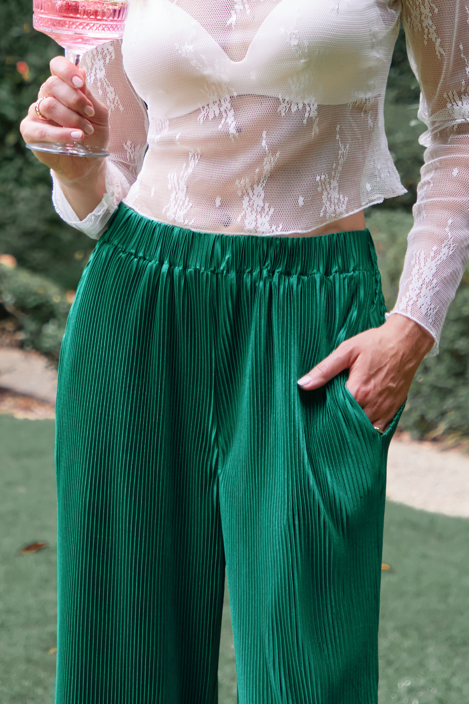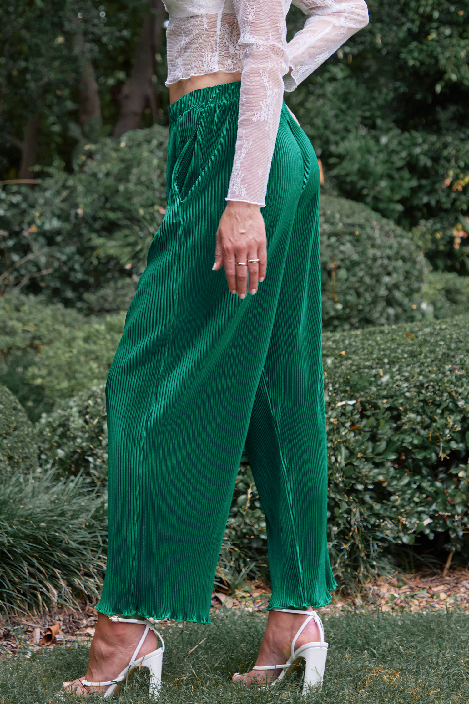 Pantalones rectos plisados esmeralda