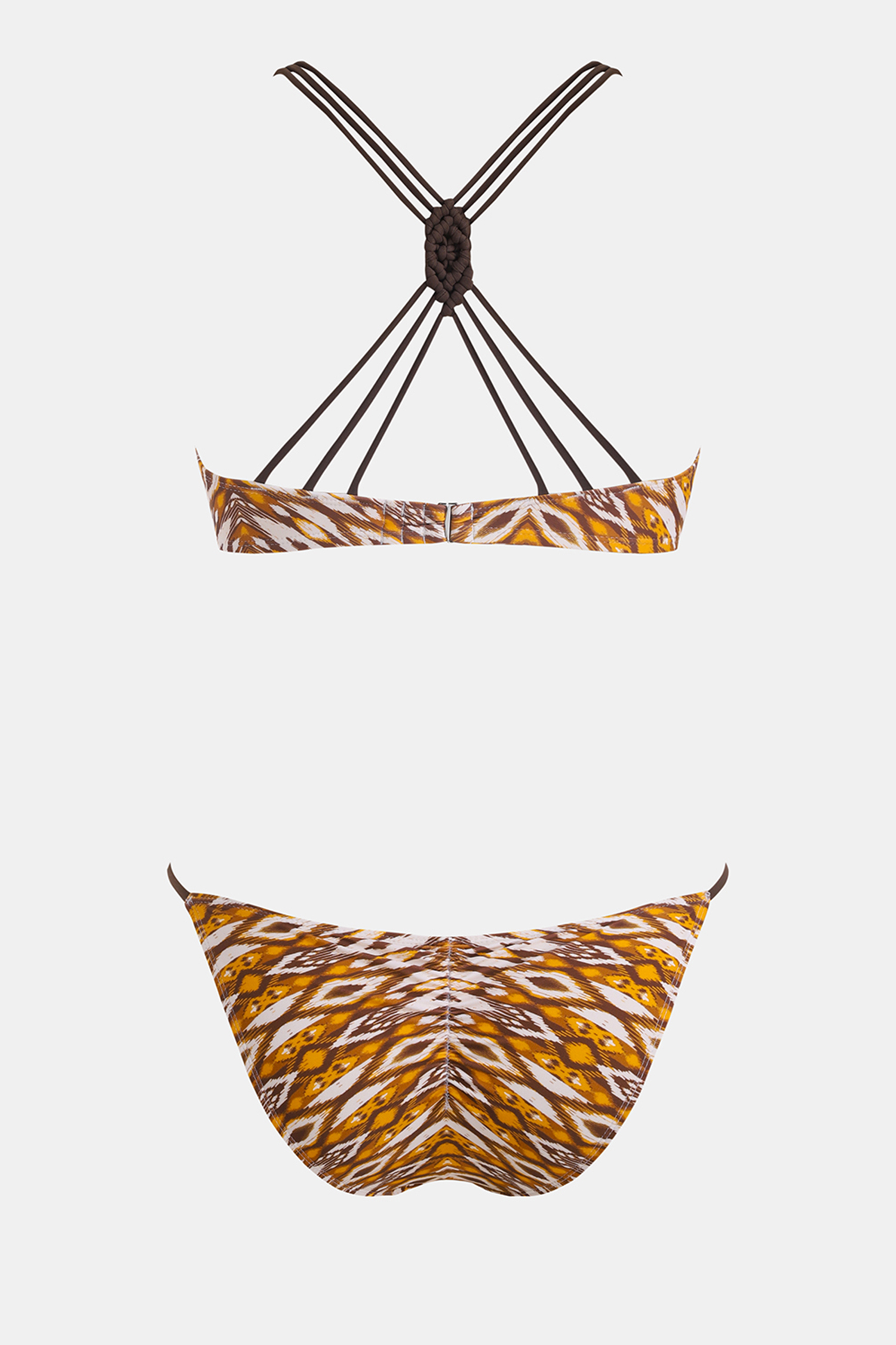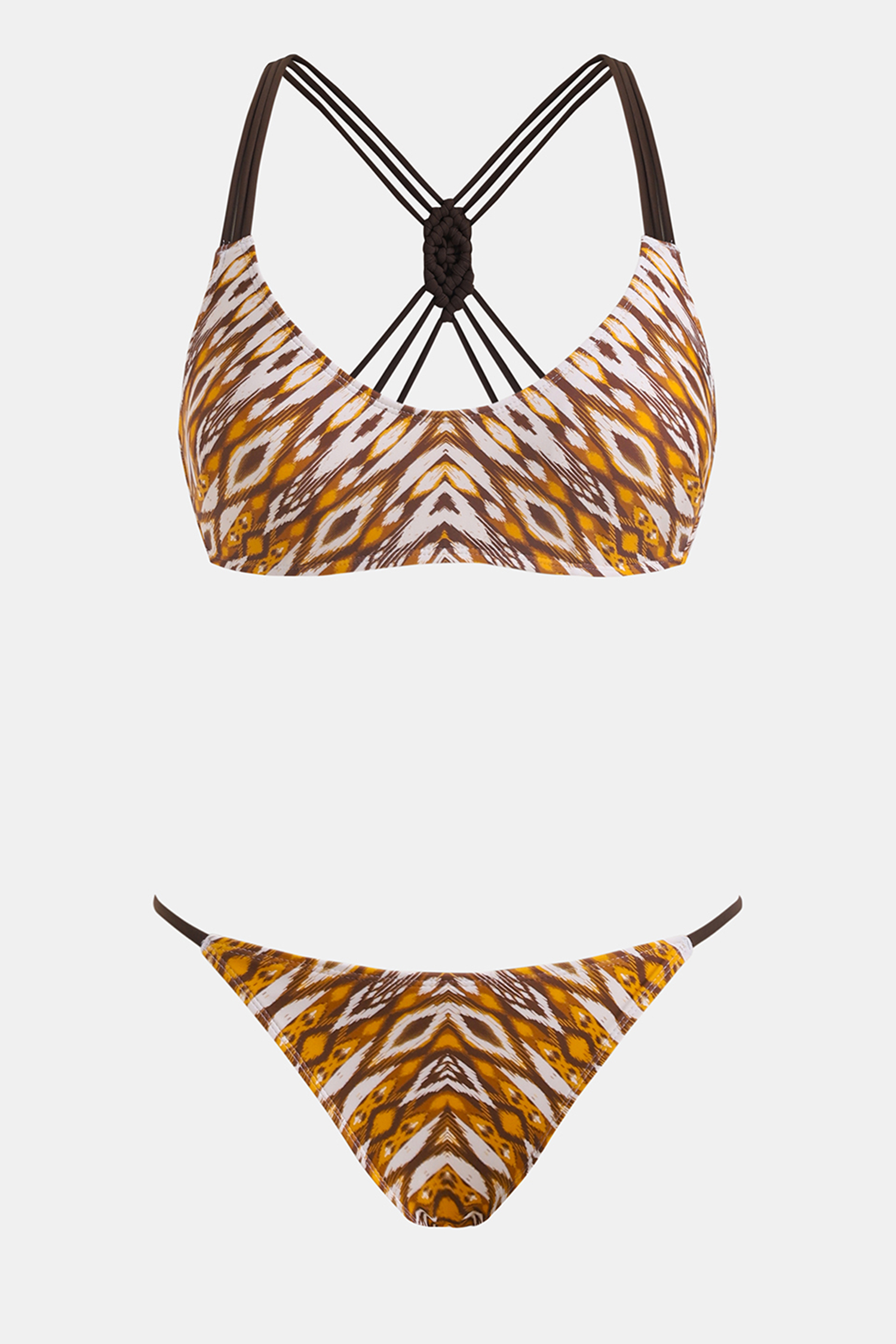 El conjunto de bikini bohemio Flights of Fancy te lleva a nuevas alturas de estilo y comodidad. Este conjunto cuenta con escote redondo, tirantes anchos para mayor sujeción y copas suaves extraíbles para un ajuste perfecto. Con cierre de gancho en la espalda, cintura baja y piernas de corte alto, ofrece una silueta favorecedora y una cobertura moderna y atractiva para el trasero.