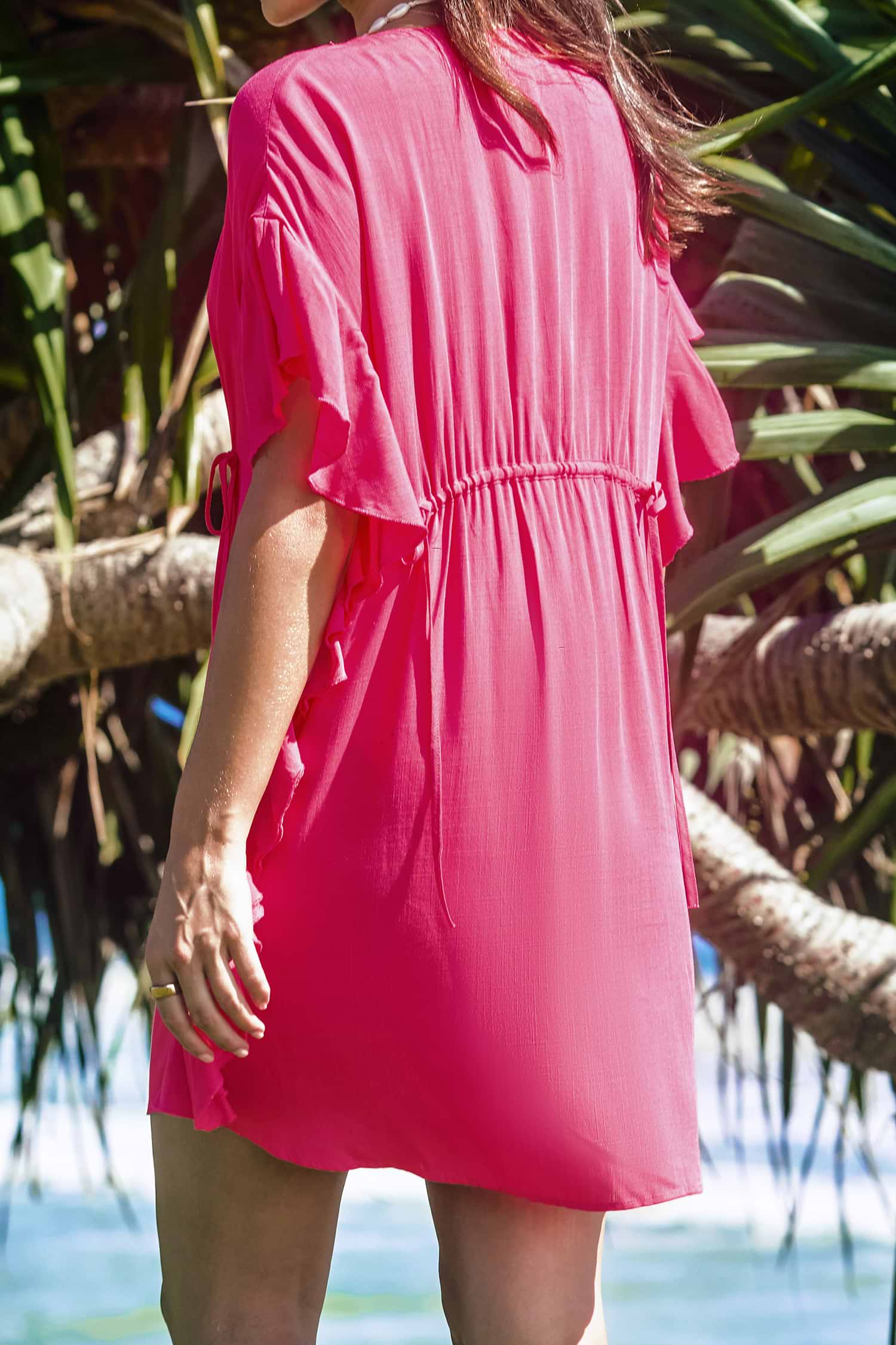 Mini pareo fucsia con cuello dividido y cintura con cordón