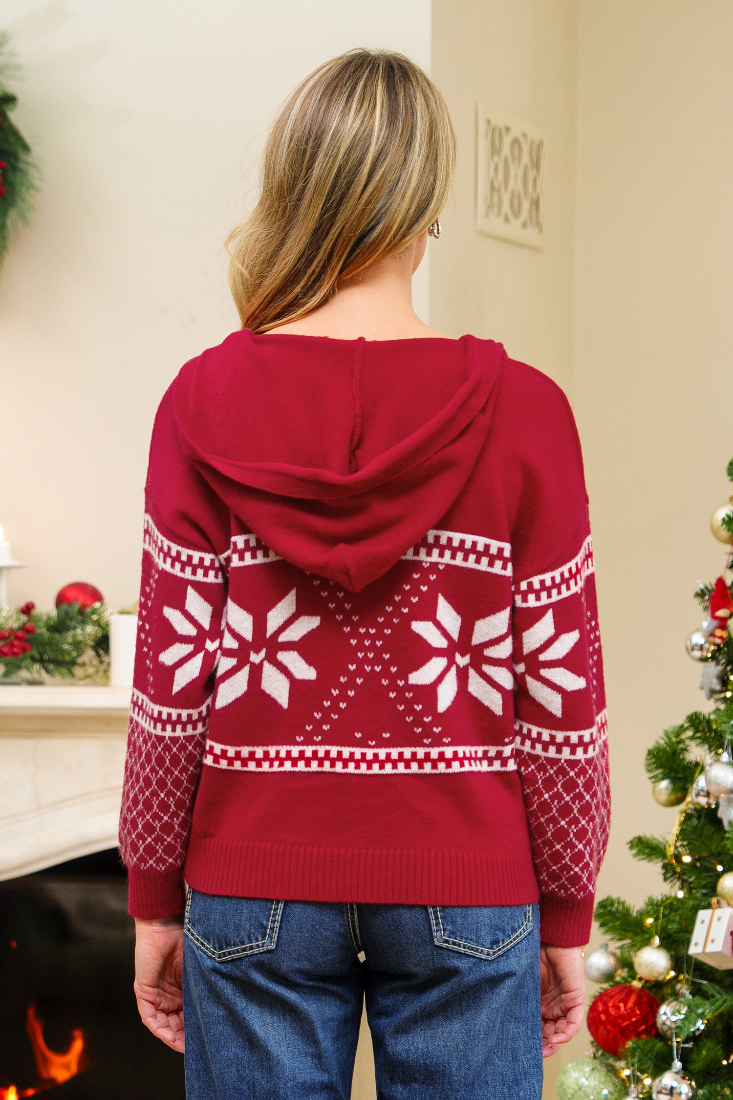 Suéter con capucha y cordón de manga larga con estampado geométrico