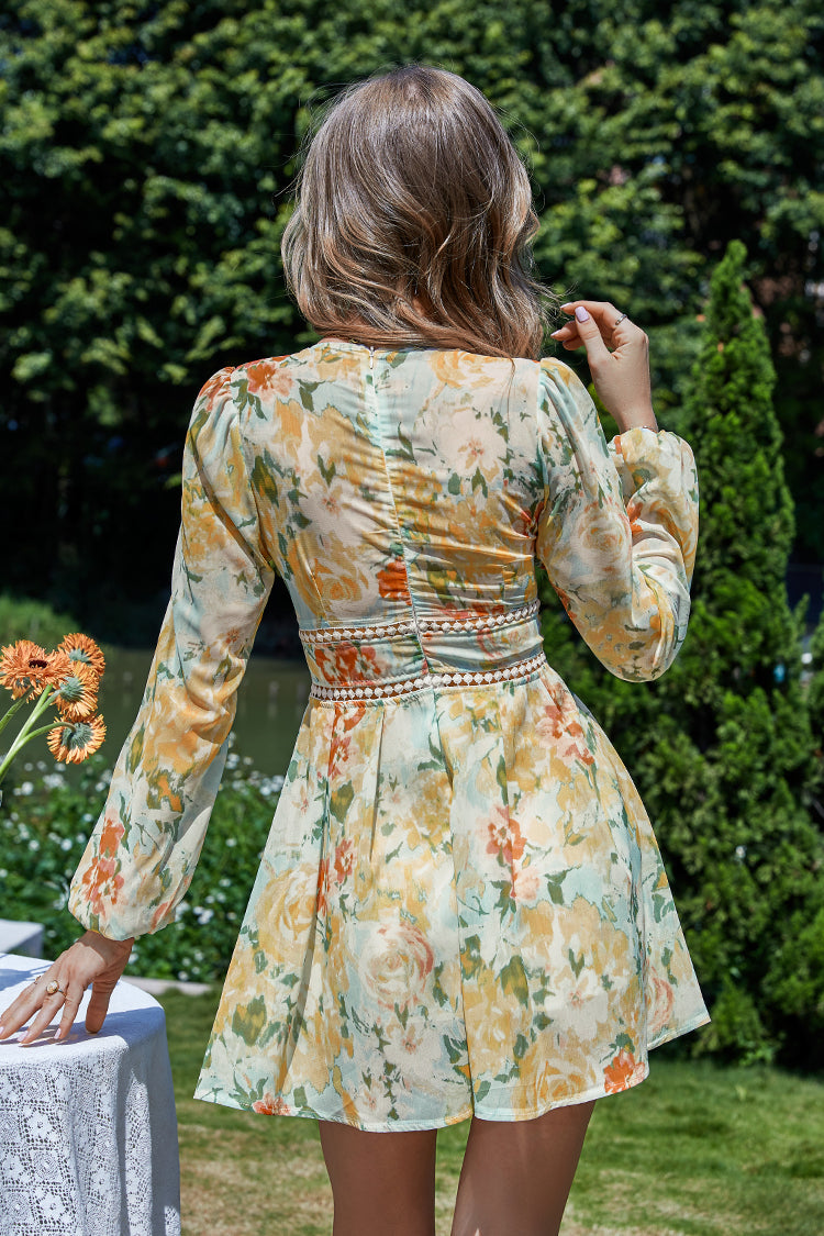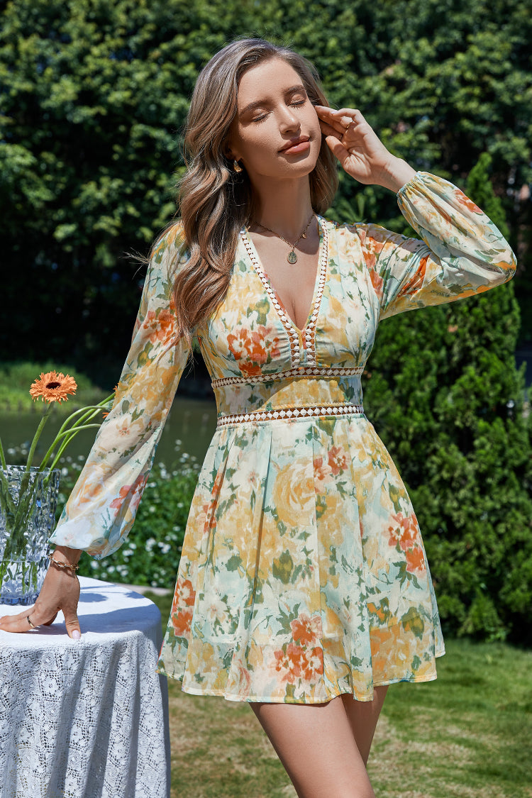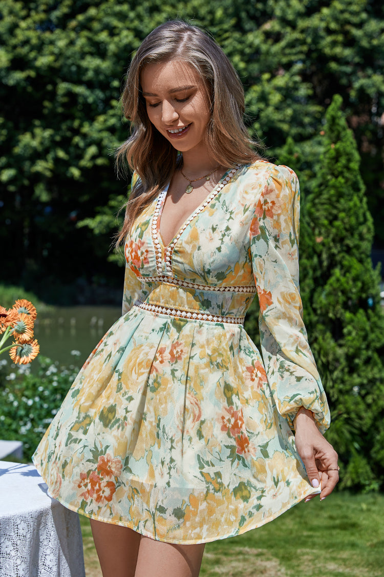 Gerda Vestido tubo con Escote V Ribetes de encaje Mangas abullonadas