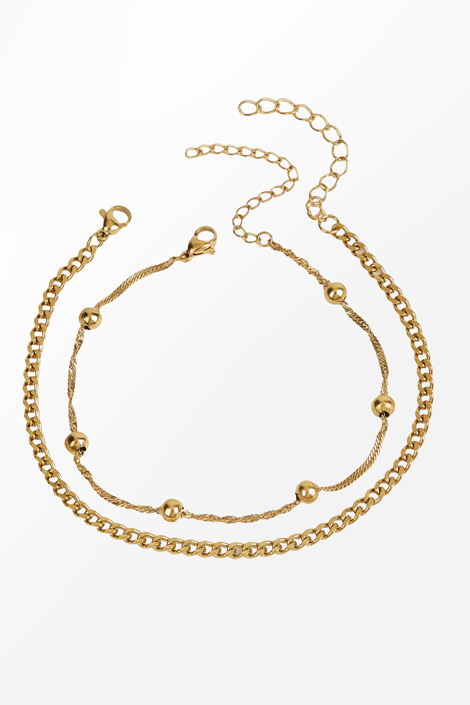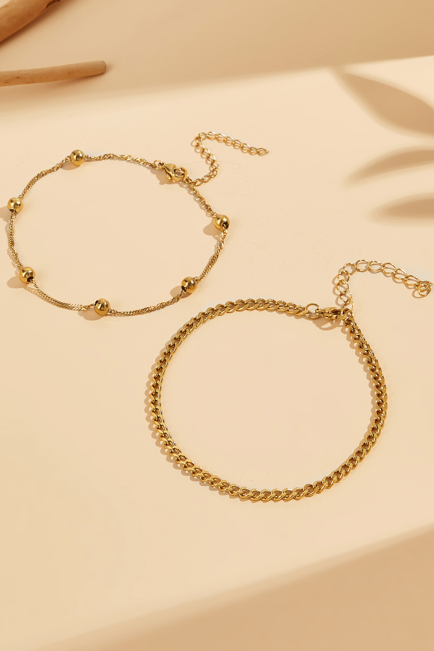 Conjunto de tobillera de eslabones de cadena en tono dorado
