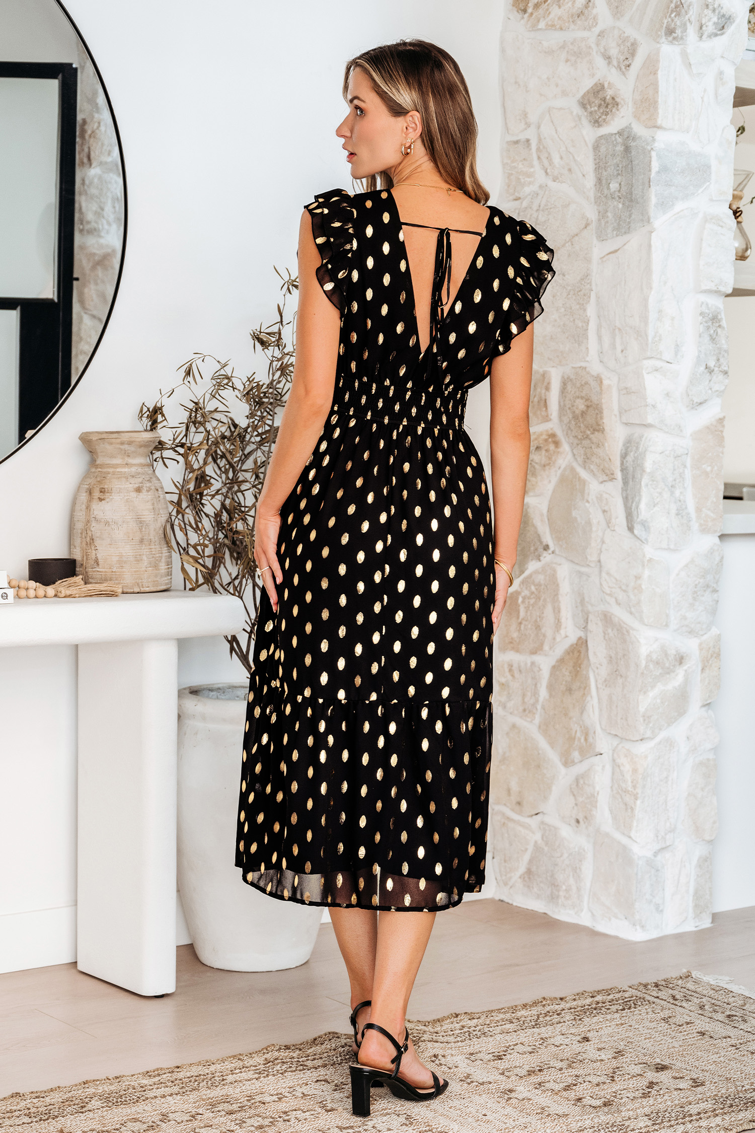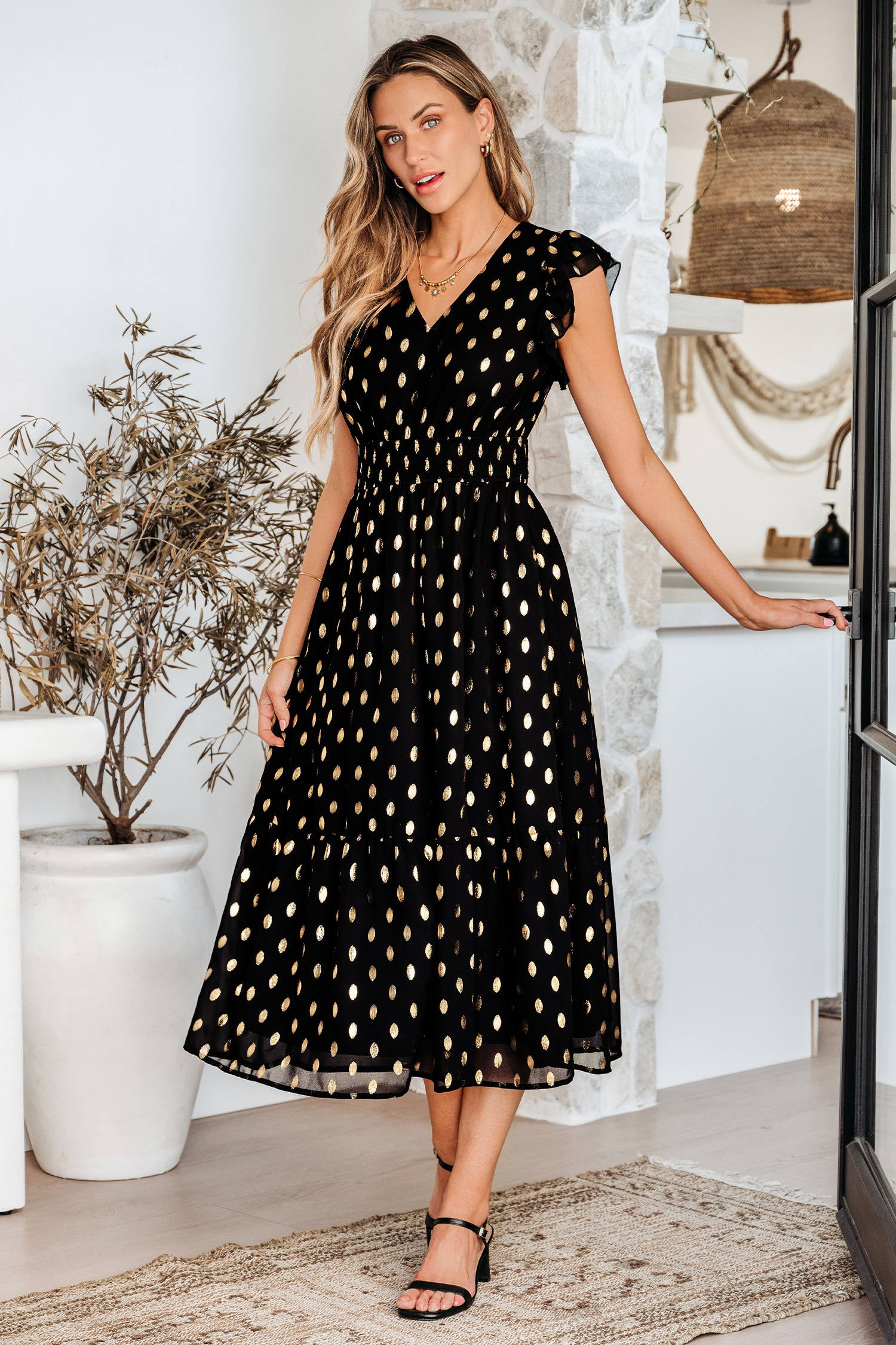 Vestido largo de manga corta con lunares de Goldenrod Fields