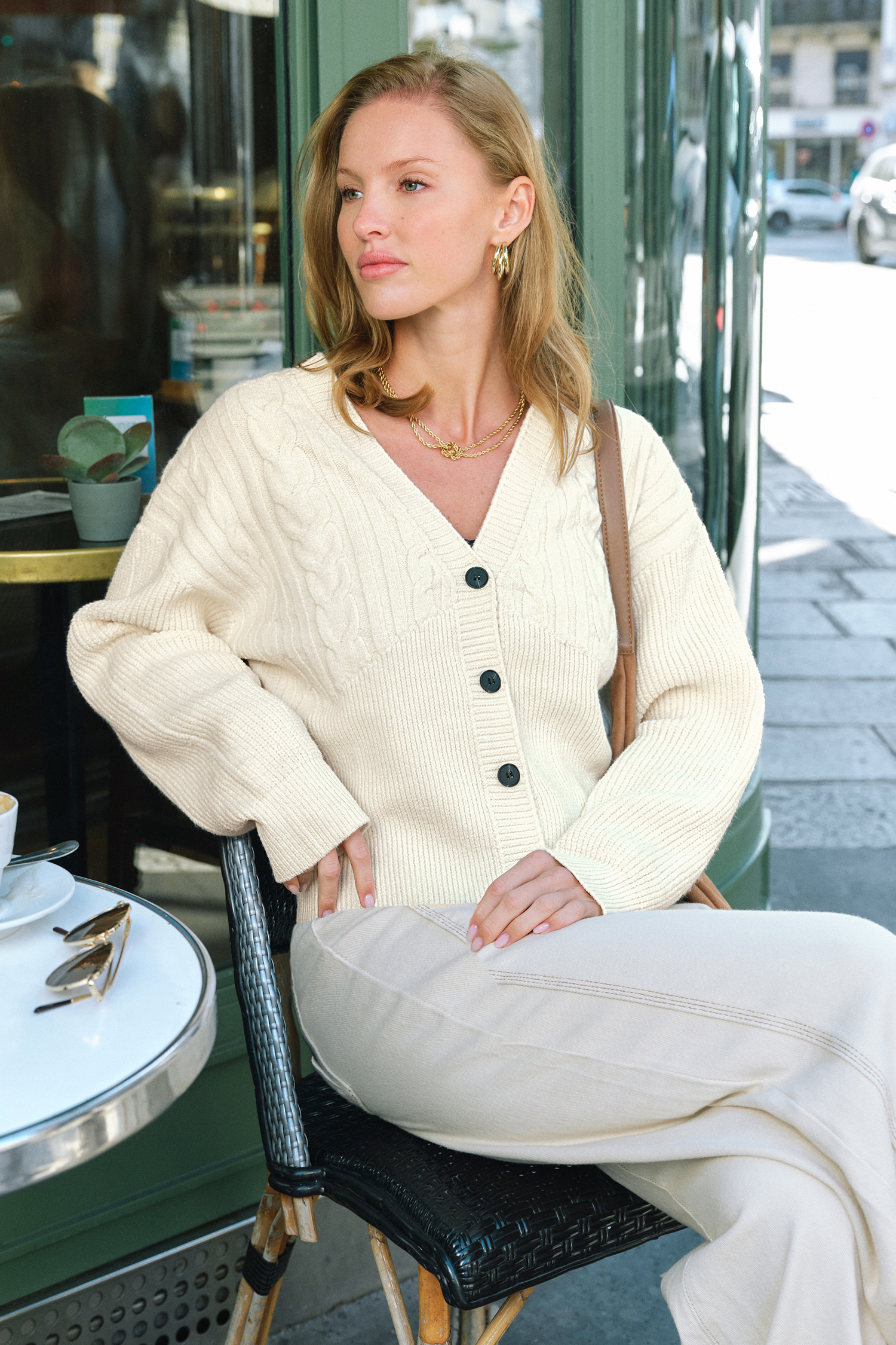 El cárdigan crema Good Form es sinónimo de estilo desenfadado y un encanto atemporal. Su escote en V, mangas largas y cintura ceñida lo hacen elegante y acogedor.