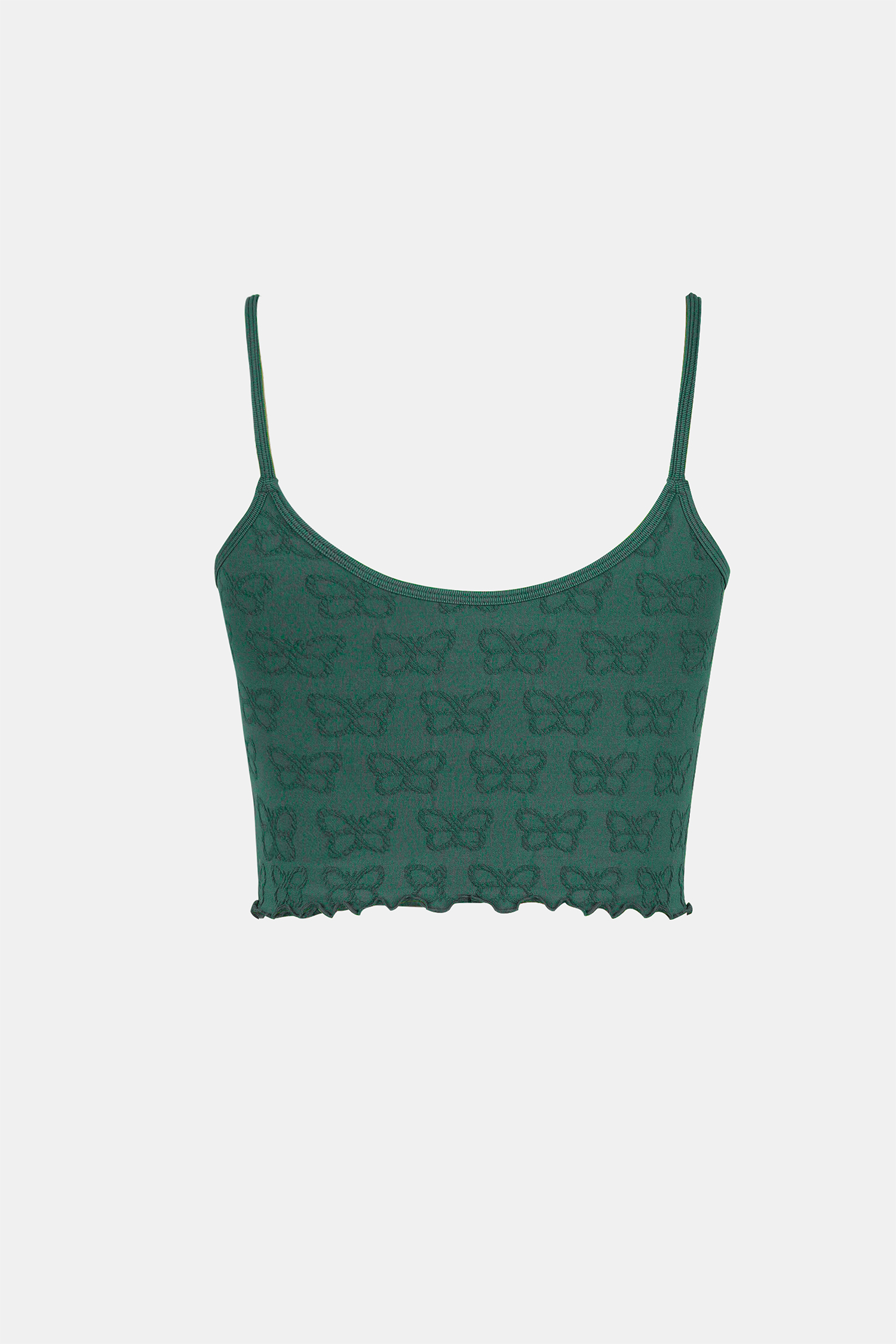 Top corto sin mangas con cuello redondo y mariposa verde sin costuras