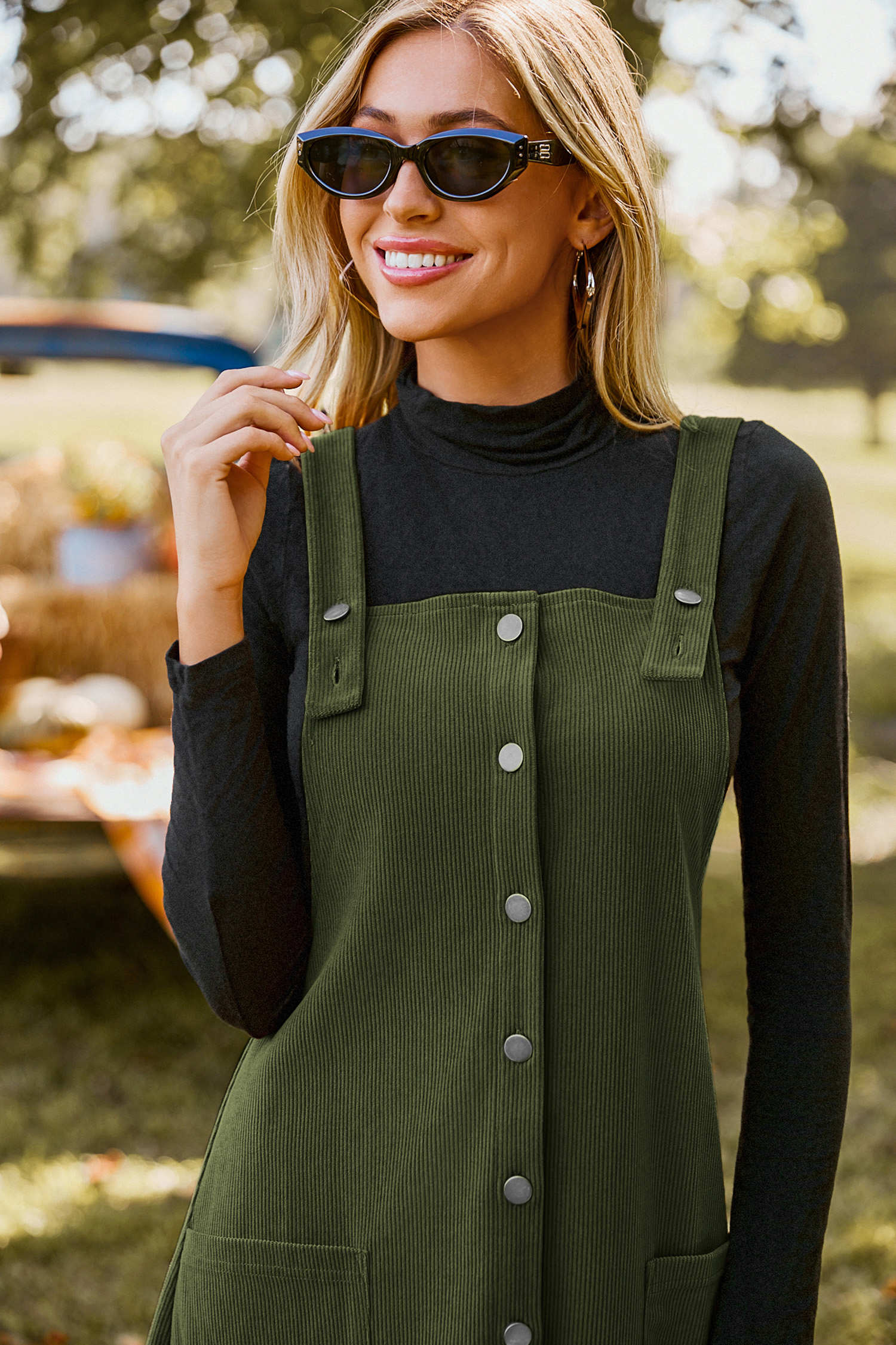 Vestido estilo pichi de pana verde con cuello cuadrado