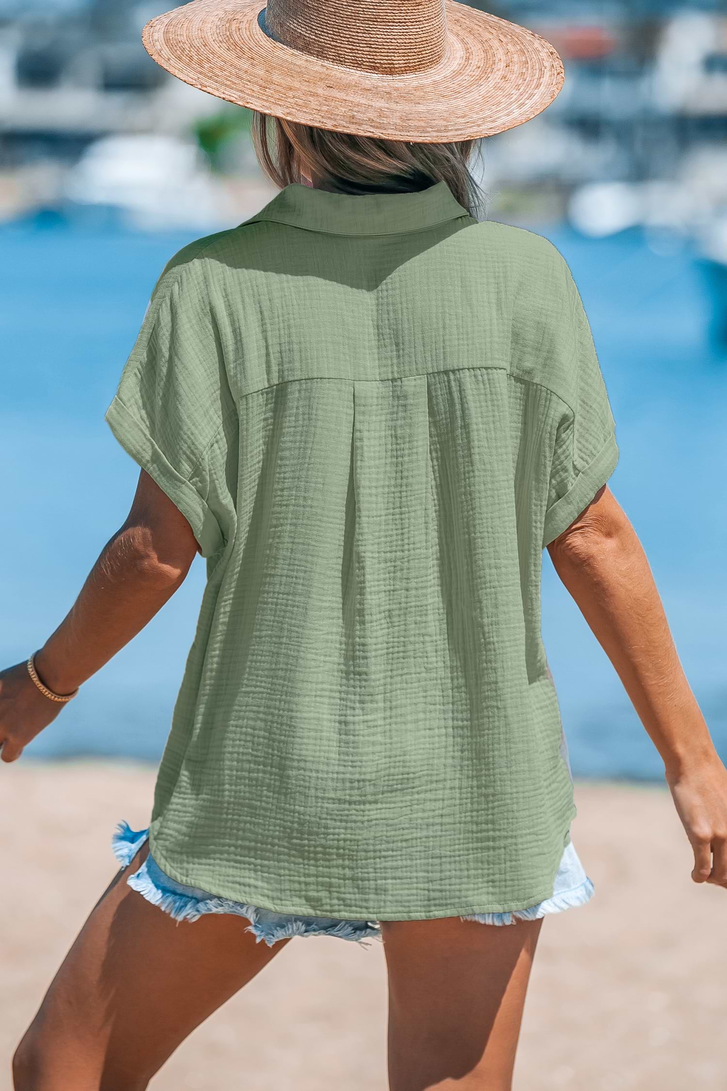 Top con botones delanteros y cuello de algodón verde