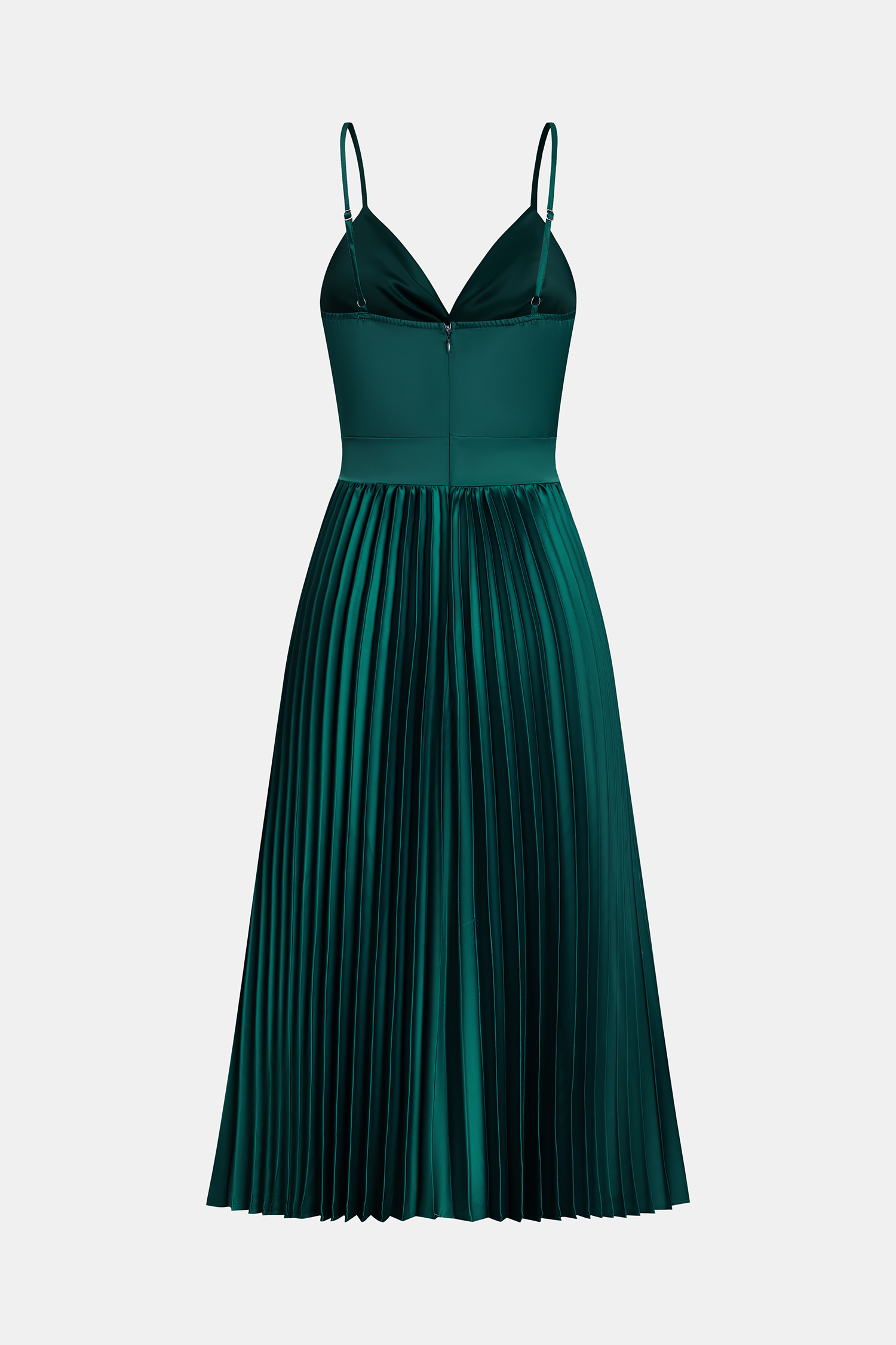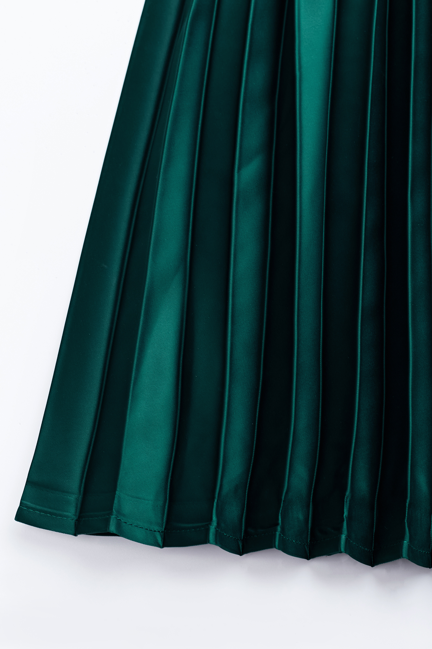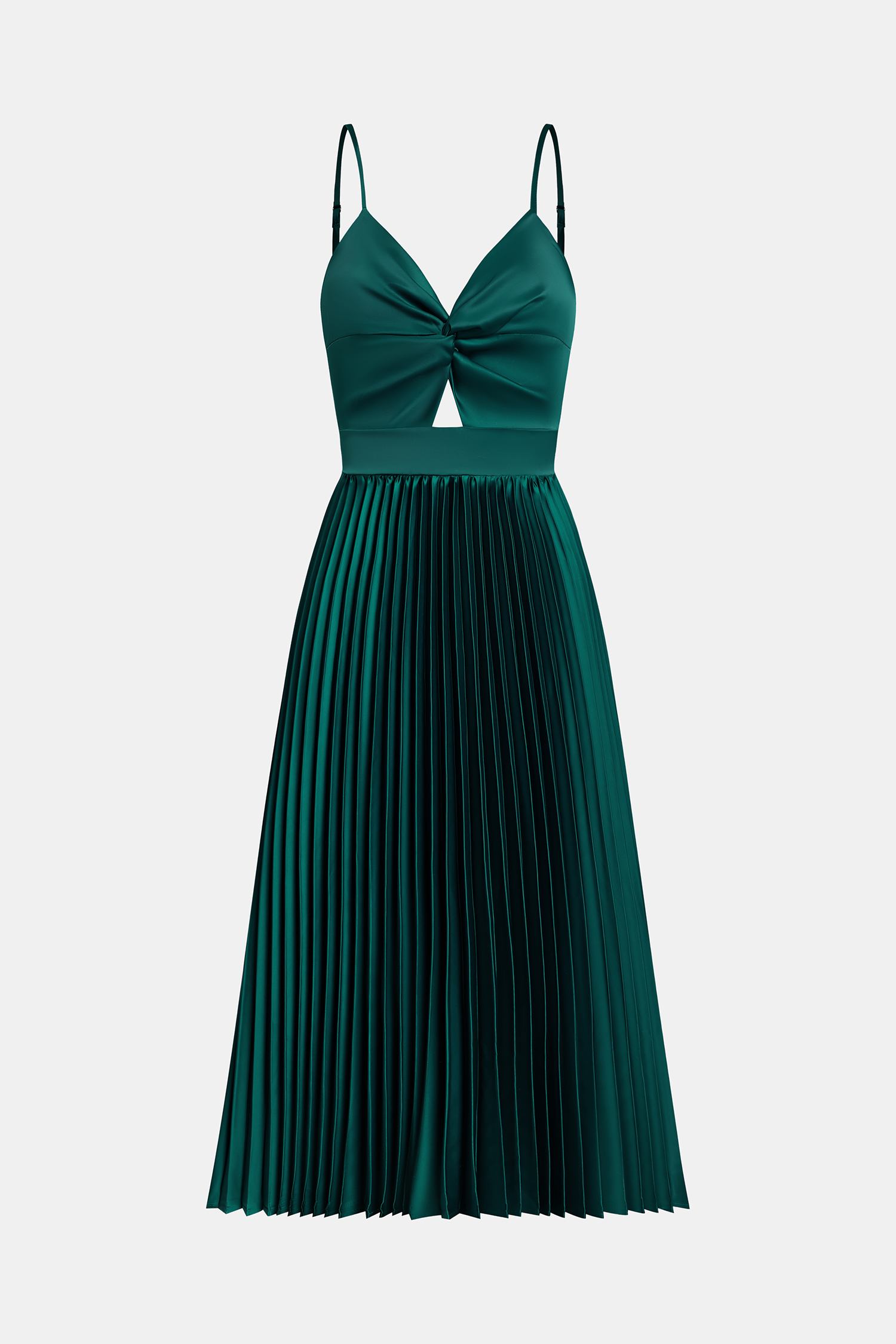 ¿Estás lista para ser el centro de atención? Este vestido largo verde con escote en forma de corazón y abertura en forma de cerradura te ofrece lo que buscas gracias a su favorecedor escote en forma de corazón y su llamativo detalle en forma de cerradura. La falda plisada agrega un toque dramático que la hace perfecta para esos momentos "wow".