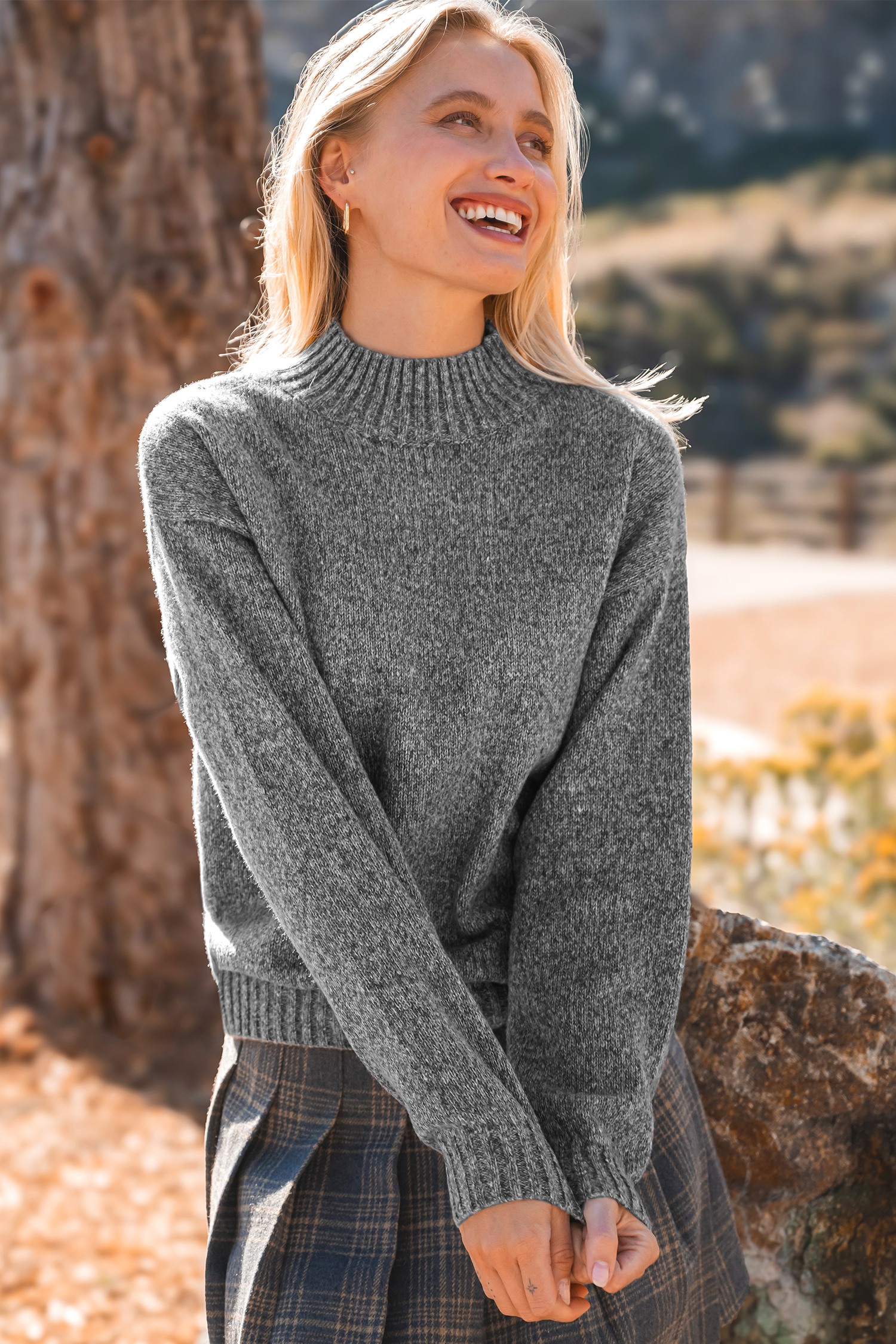 ¡Mantente cómoda y linda con el suéter gris de cuello redondo y mangas largas abullonadas! Las mangas abullonadas le dan un toque divertido a esta prenda clásica, lo que la hace perfecta para usar todos los días.