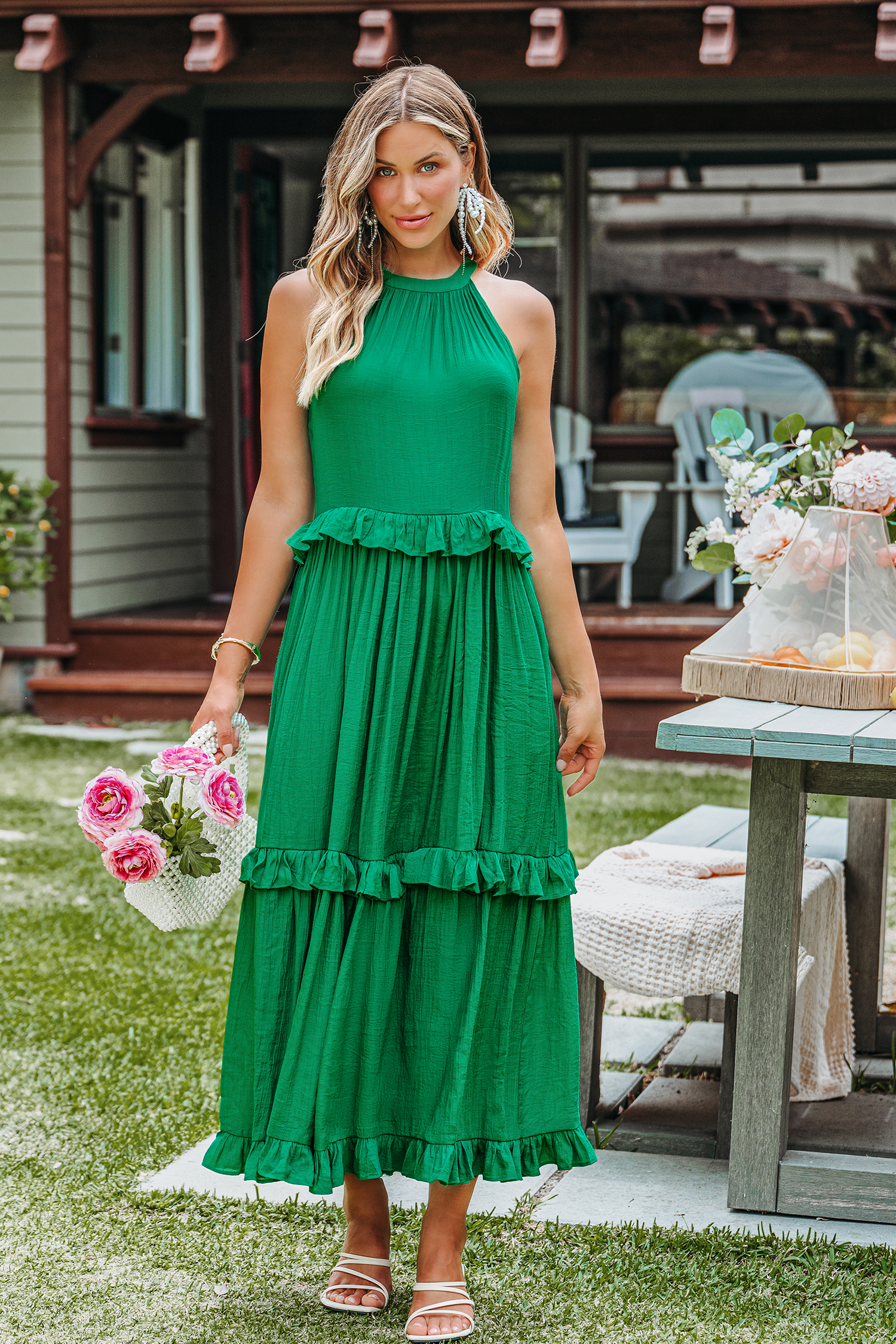 El vestido largo Jade Joy Green es una auténtica bocanada de aire fresco para tu armario. Su escote alto y su largo maxi realzan su elegante encanto.