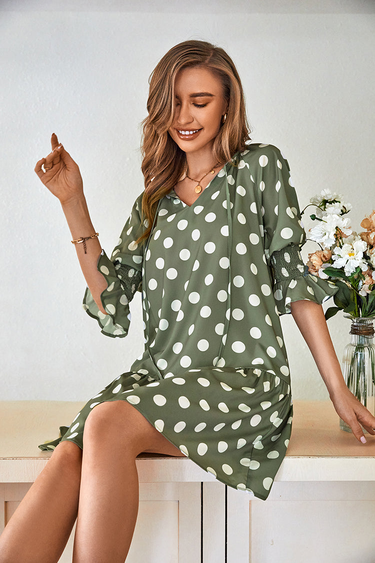 Kasia Tunic Vestido con escote V y mangas abullonadas