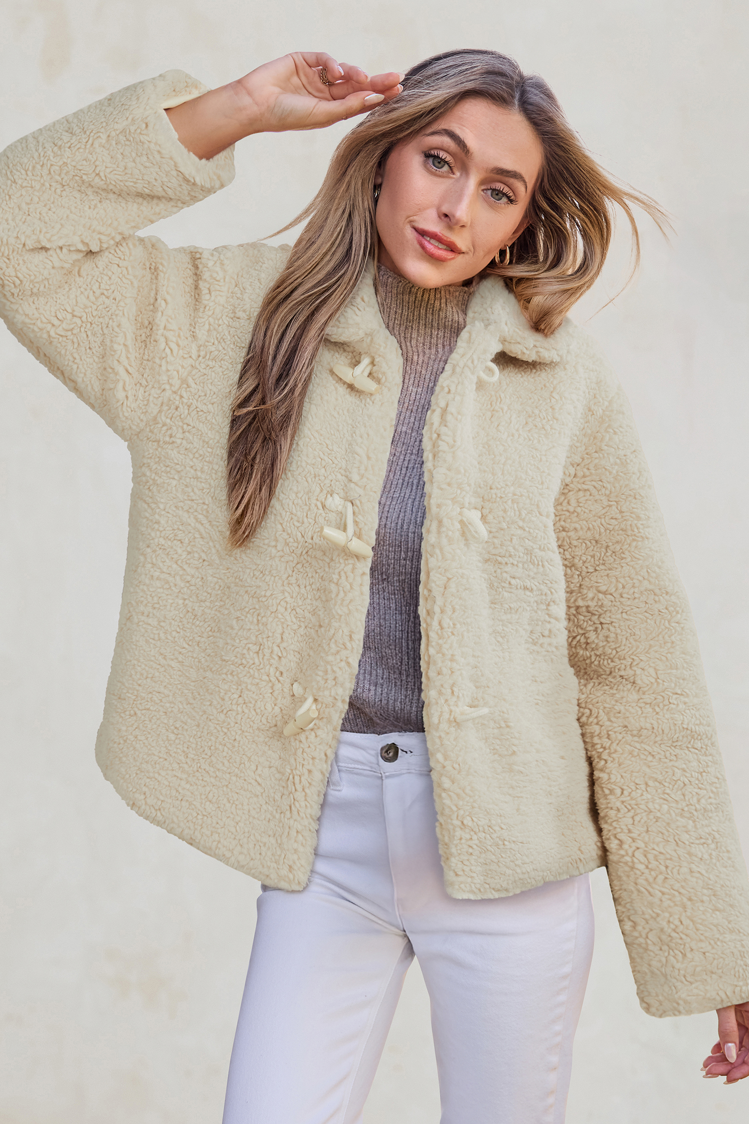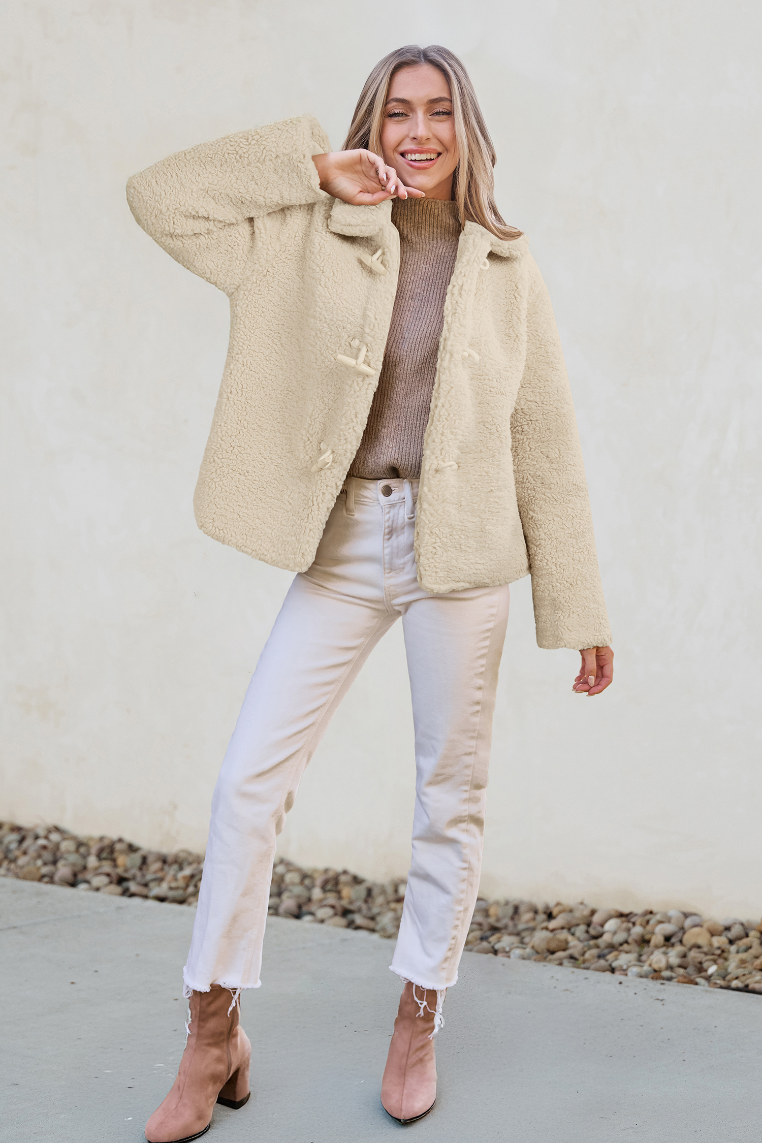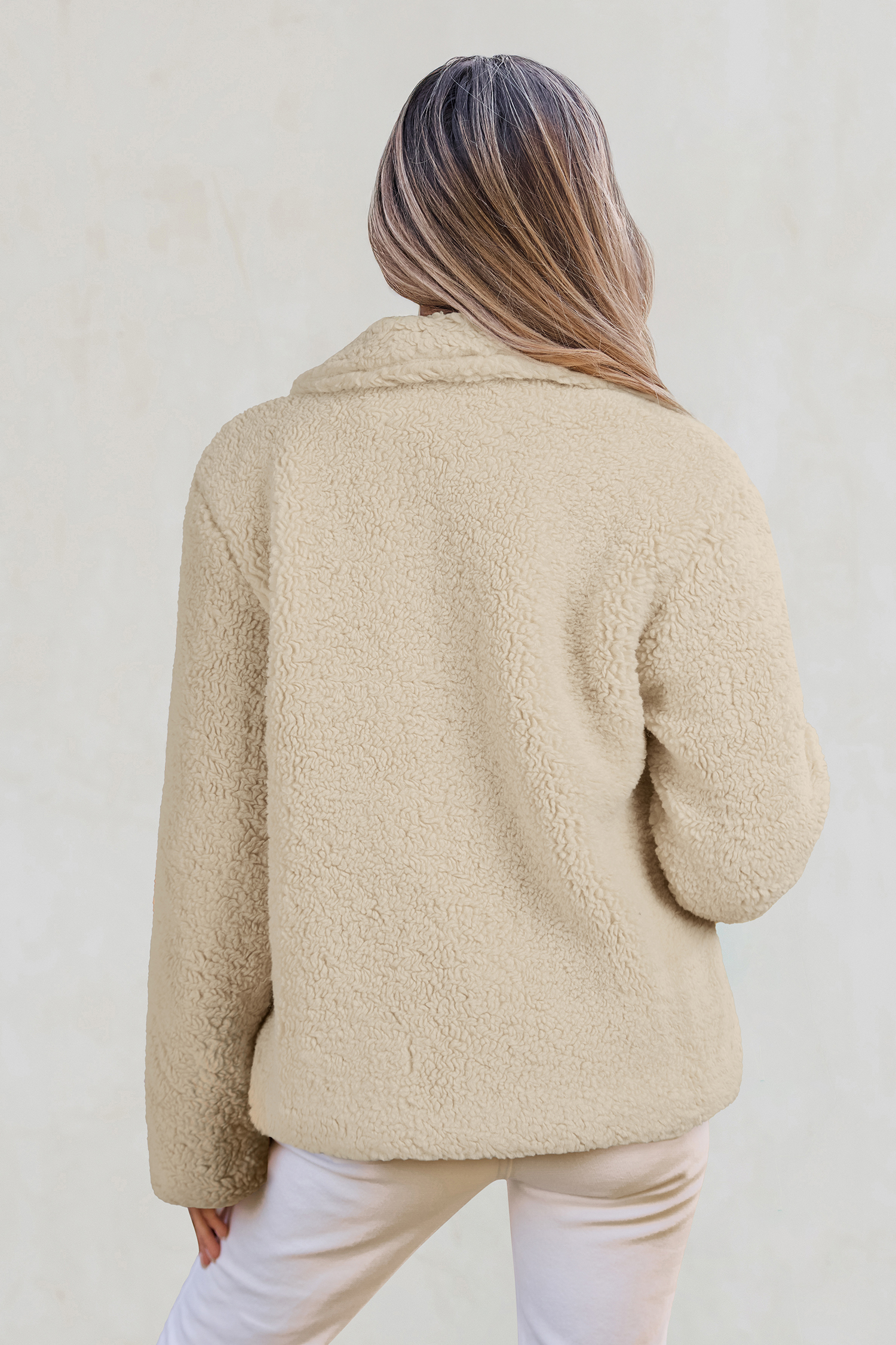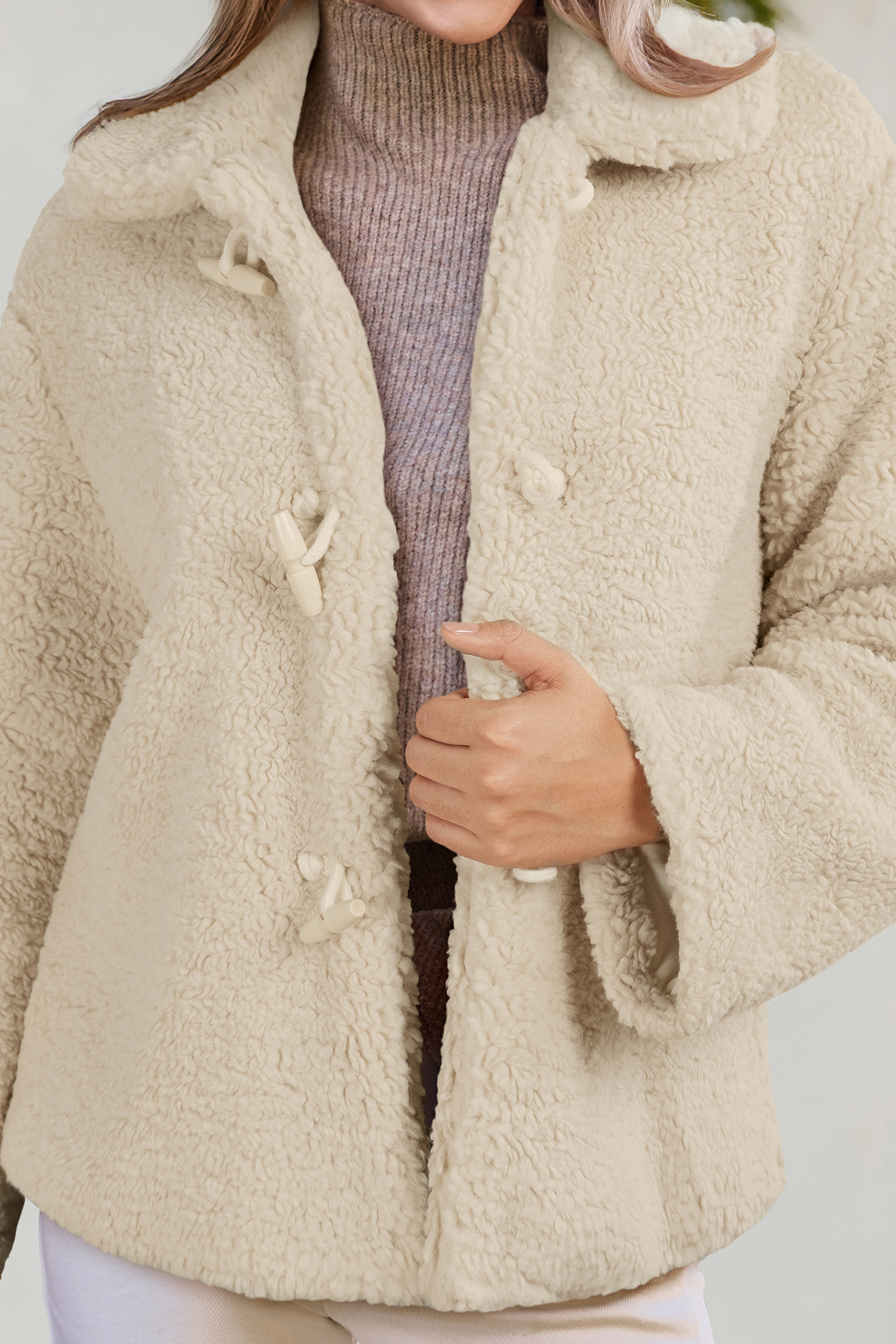 Chaqueta de punto bouclé con cierre de palanca en color caqui