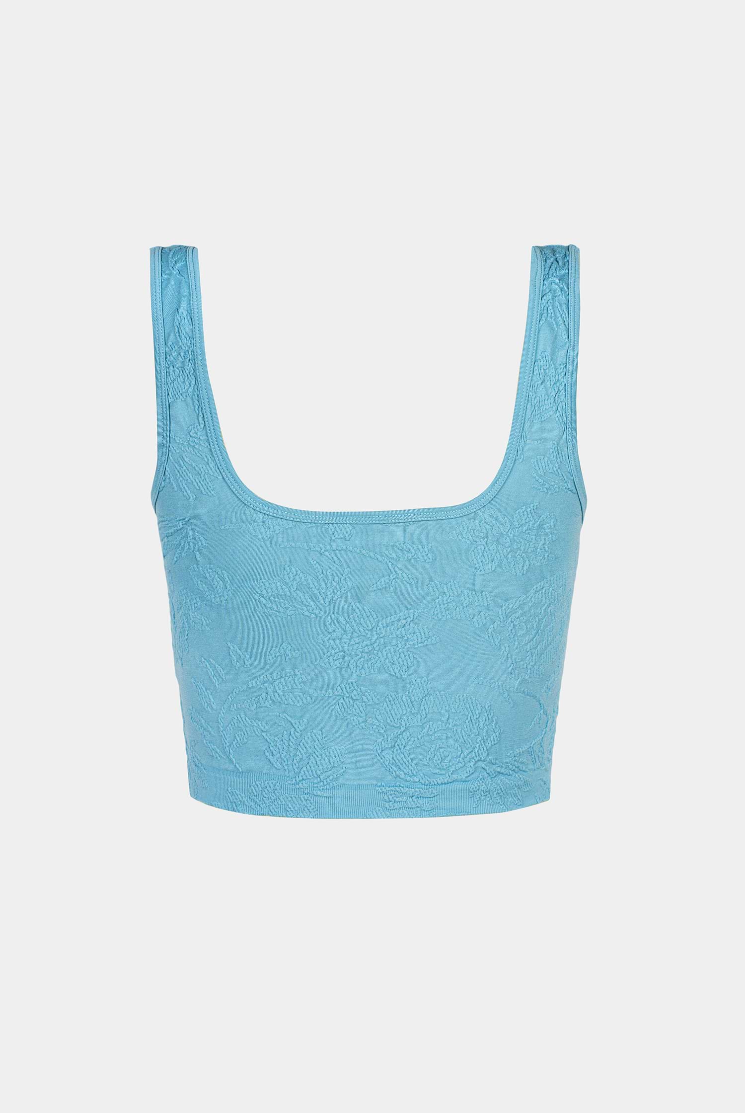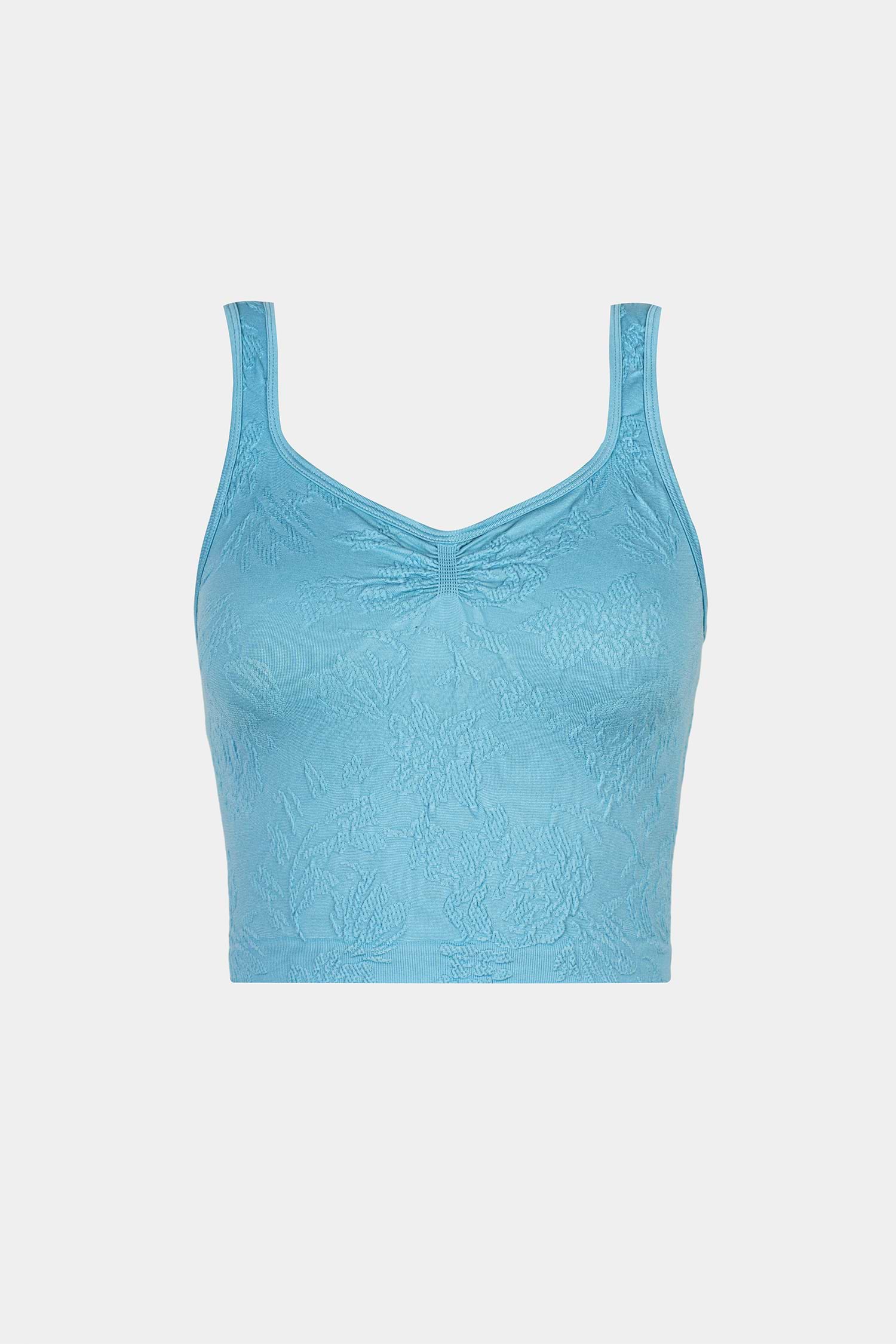 Top corto sin mangas con escote en forma de diamante y tejido sin costuras