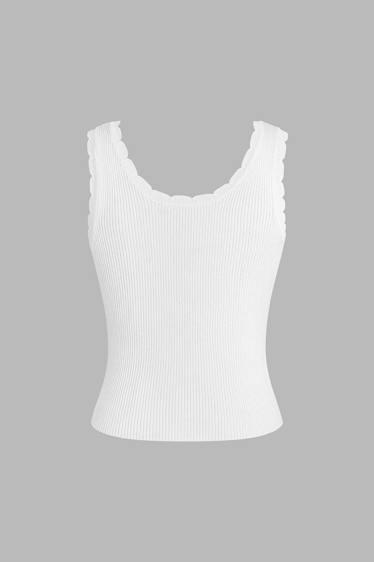 La camiseta blanca sin mangas Latte Run te da un look fresco y relajado. Su escote redondo y ribete festoneado le dan un acabado suave y femenino.