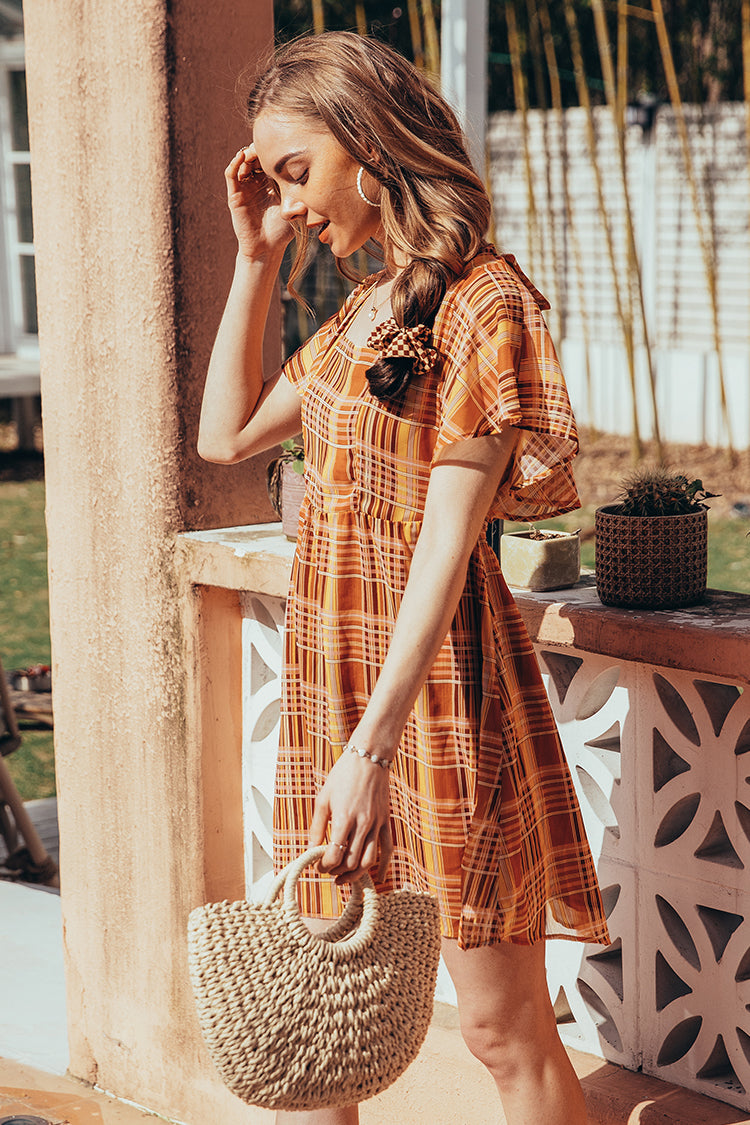 Londyn Vestido en forma de A con escote cuadrado y estampado Gingham