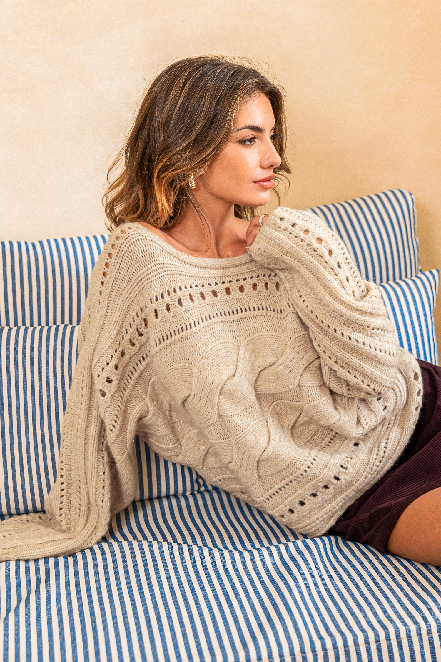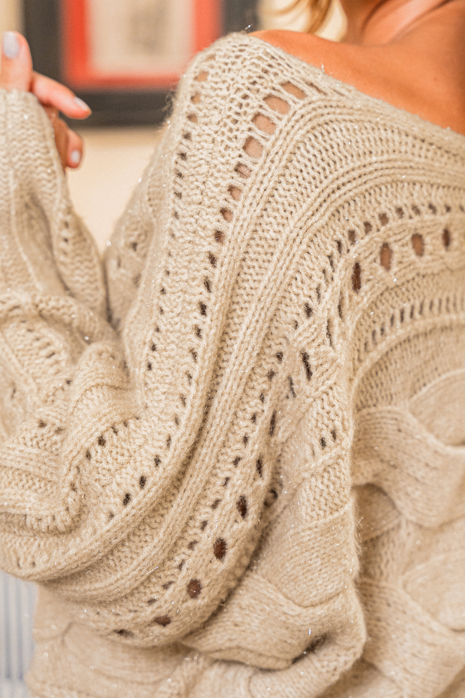 Este jersey presenta una tela brillante con sutiles hilos metálicos que le dan un aspecto suave y brillante, y está diseñado con un corte moderno y holgado. ¡El suéter beige Low Key es una prenda básica para el frío! Su cuello redondo, mangas largas y corte holgado lo hacen perfecto para usar en capas o solo para un look informal urbano.