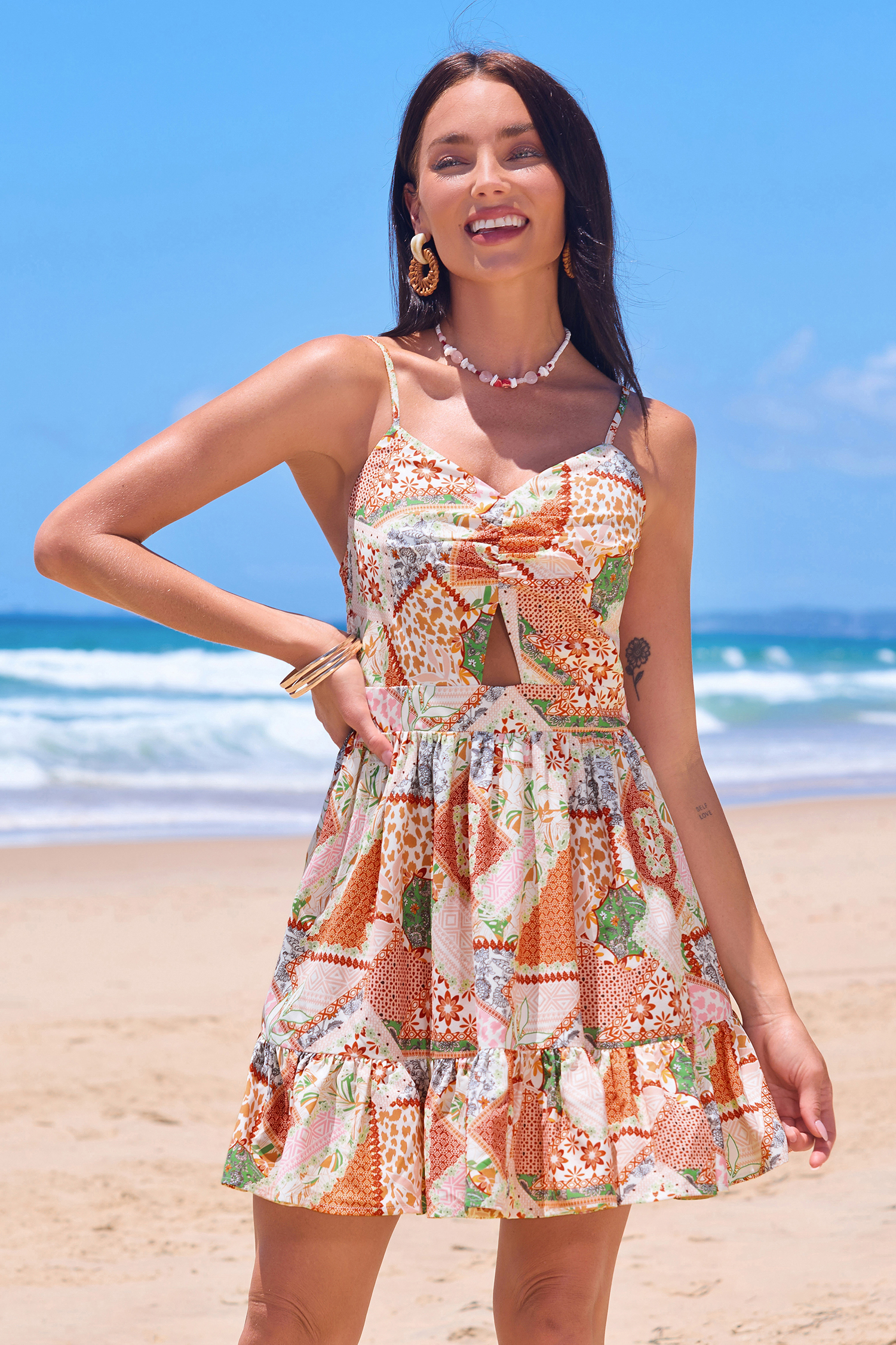 Cada puntada del minivestido de patchwork Made With Love es una pequeña obra de arte. Este minivestido, que presenta tirantes finos con escote en V y un delicado detalle de abertura en forma de cerradura, está confeccionado con los detalles más dulces.
