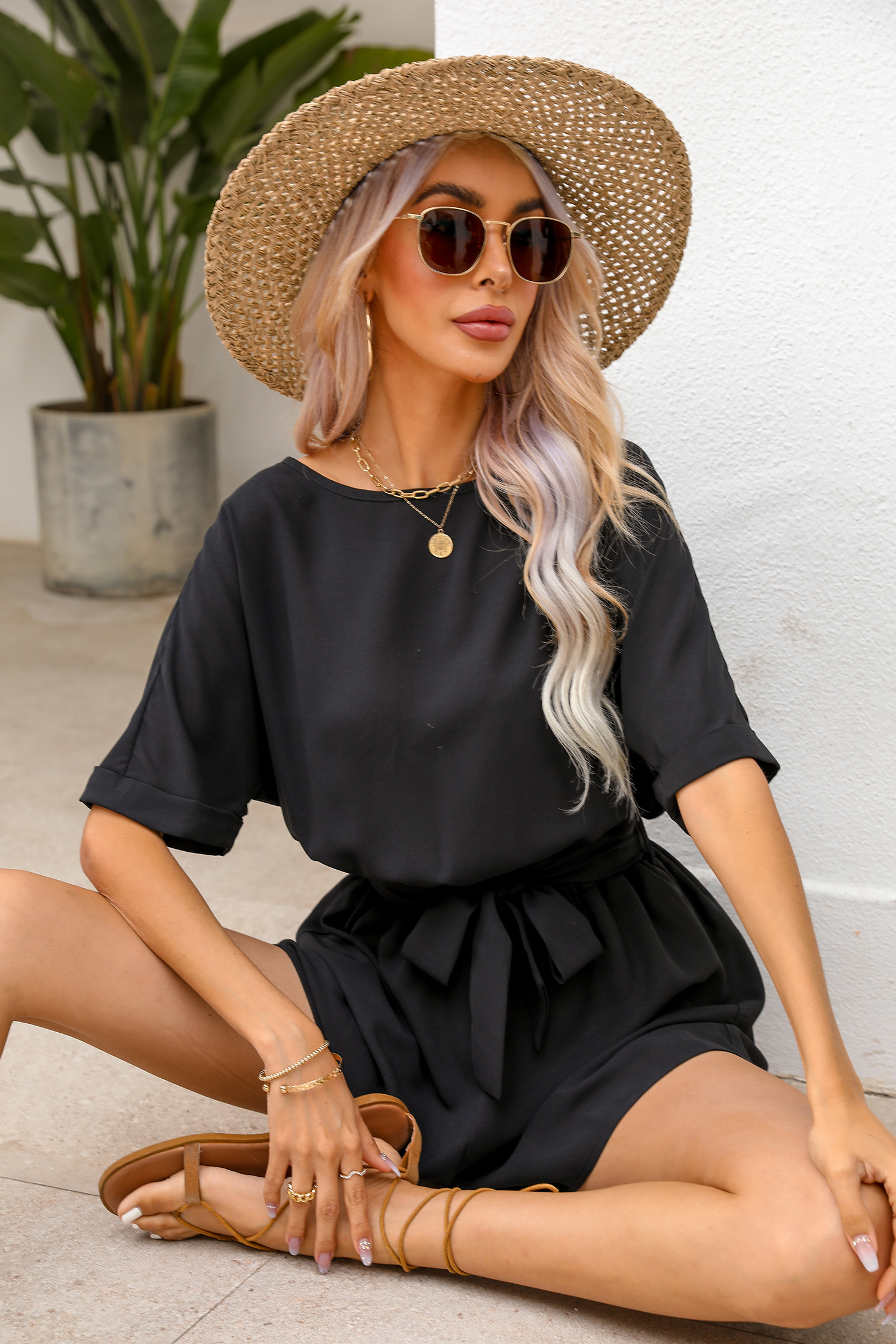 InicioMameluco de manga corta con cinturón