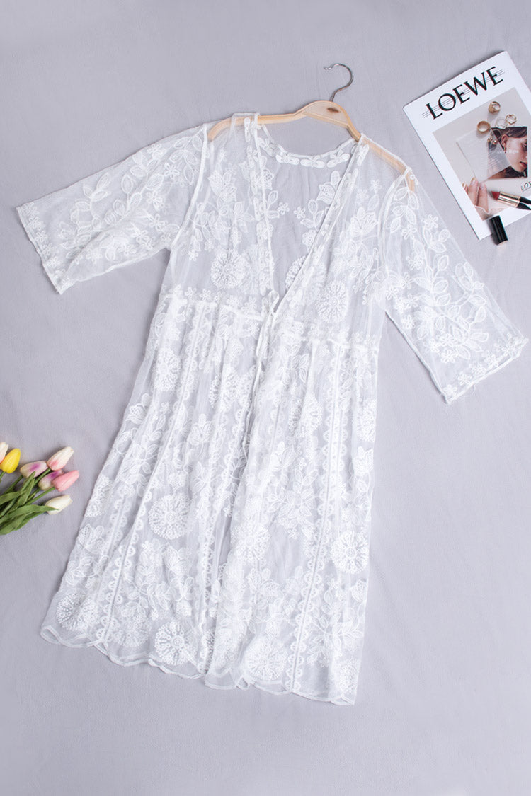 InicioMedia Manga Kimono Cover Up con Cintura Atada