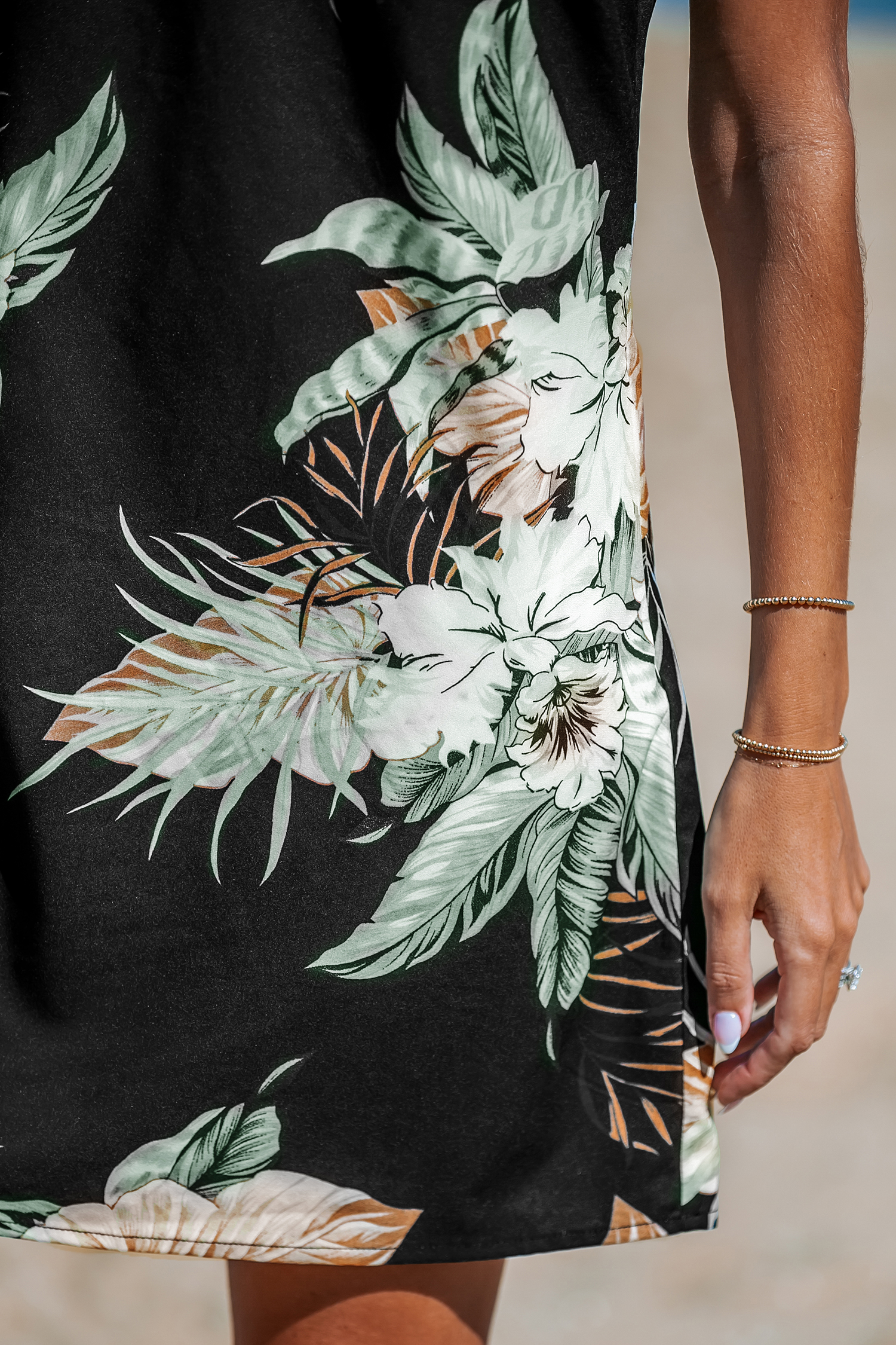 Minivestido en forma de A sin mangas con estampado floral de medianoche