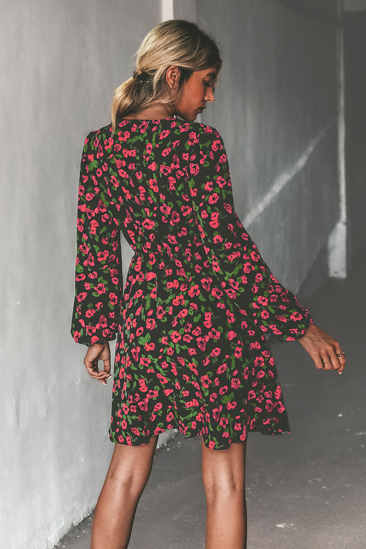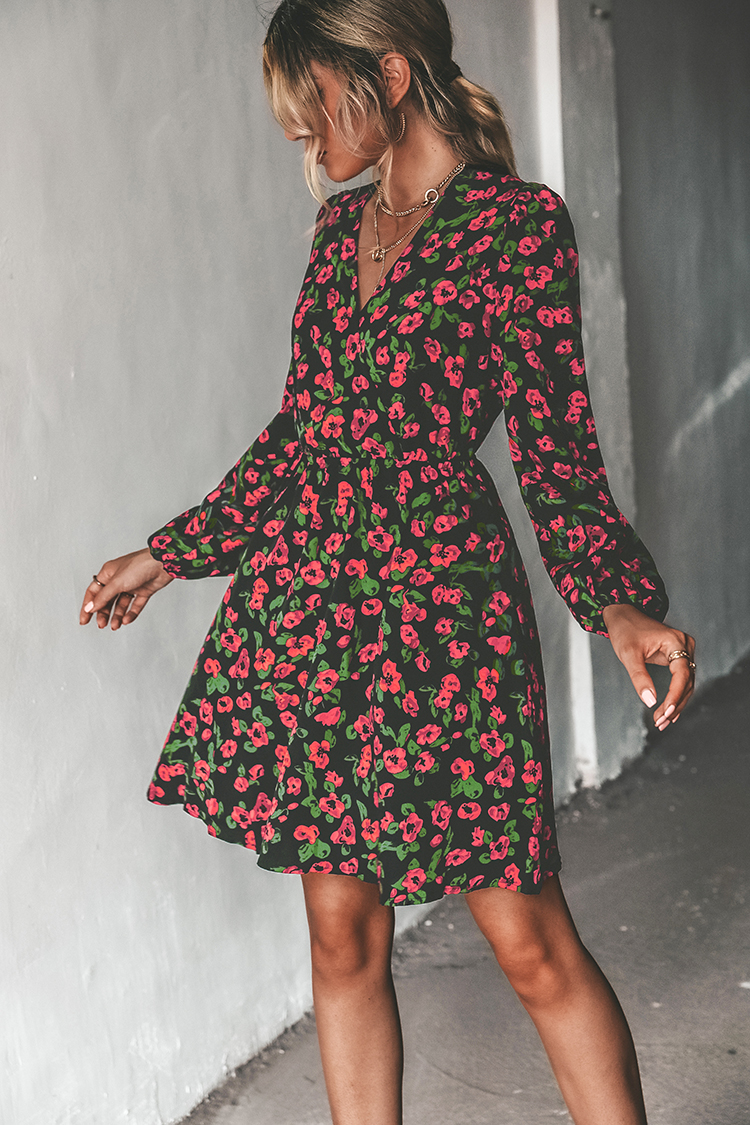 Mini Vestido con Estampado Floral con Sobrecubierta