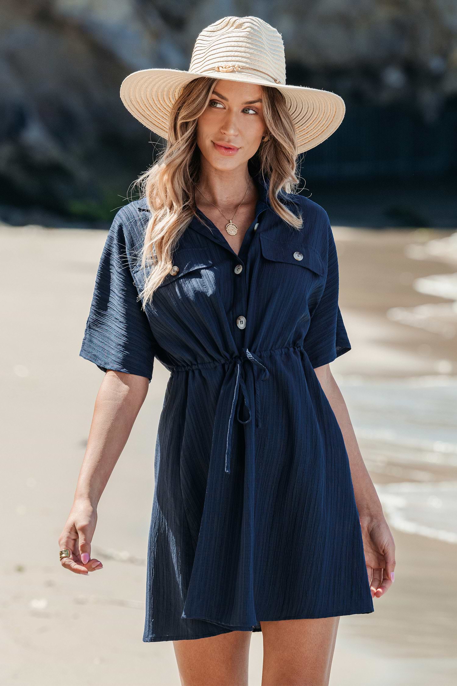 Minivestido azul marino con botones delanteros y manga corta con cuello