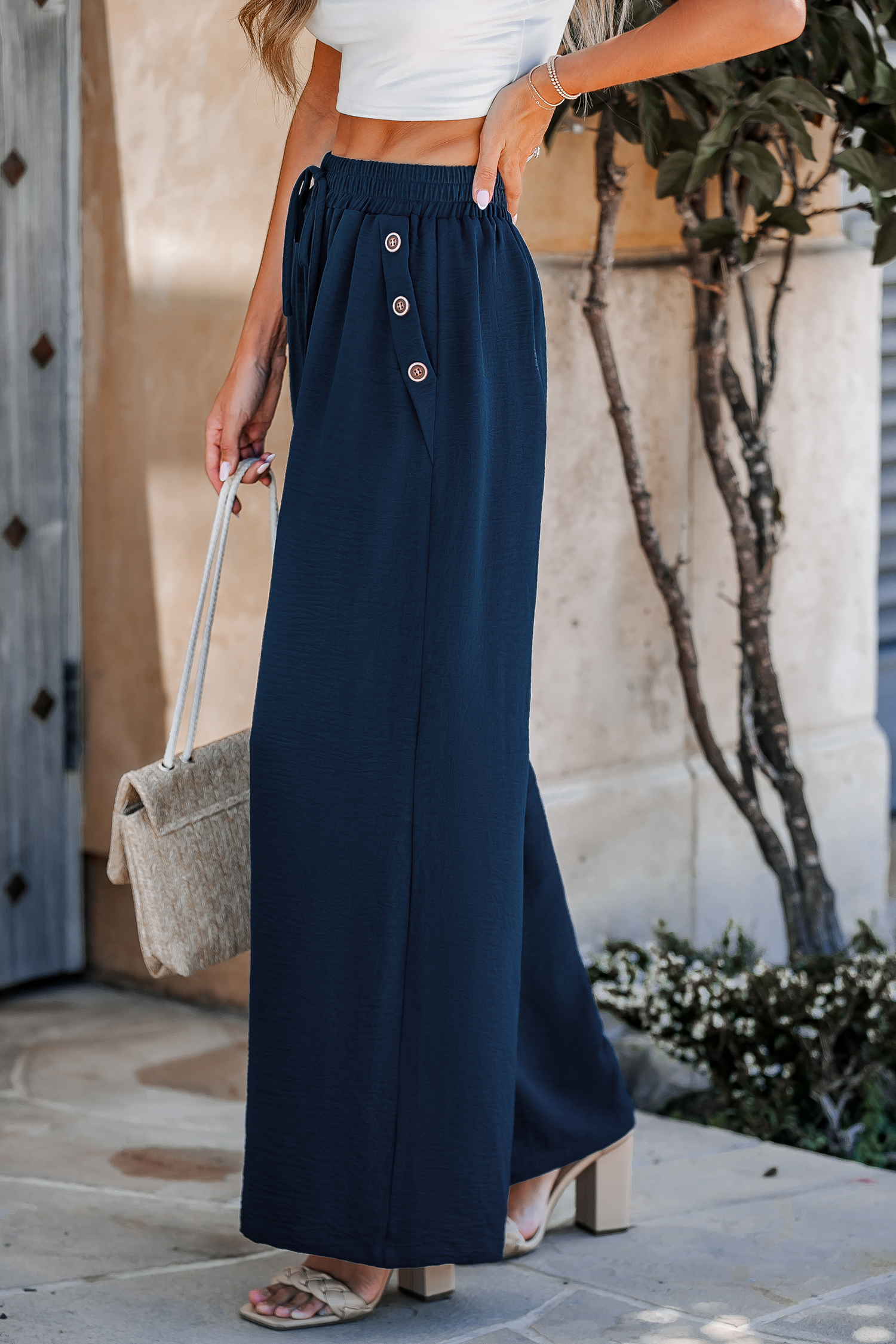 Pantalones azul marino con botones y pernera ancha con cintura elástica