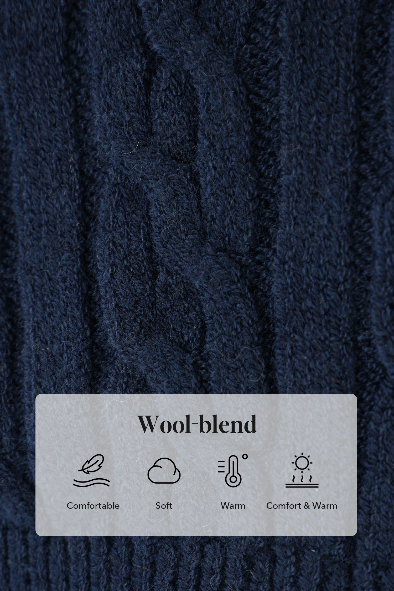 Suéter de punto trenzado con mangas largas en color azul marino