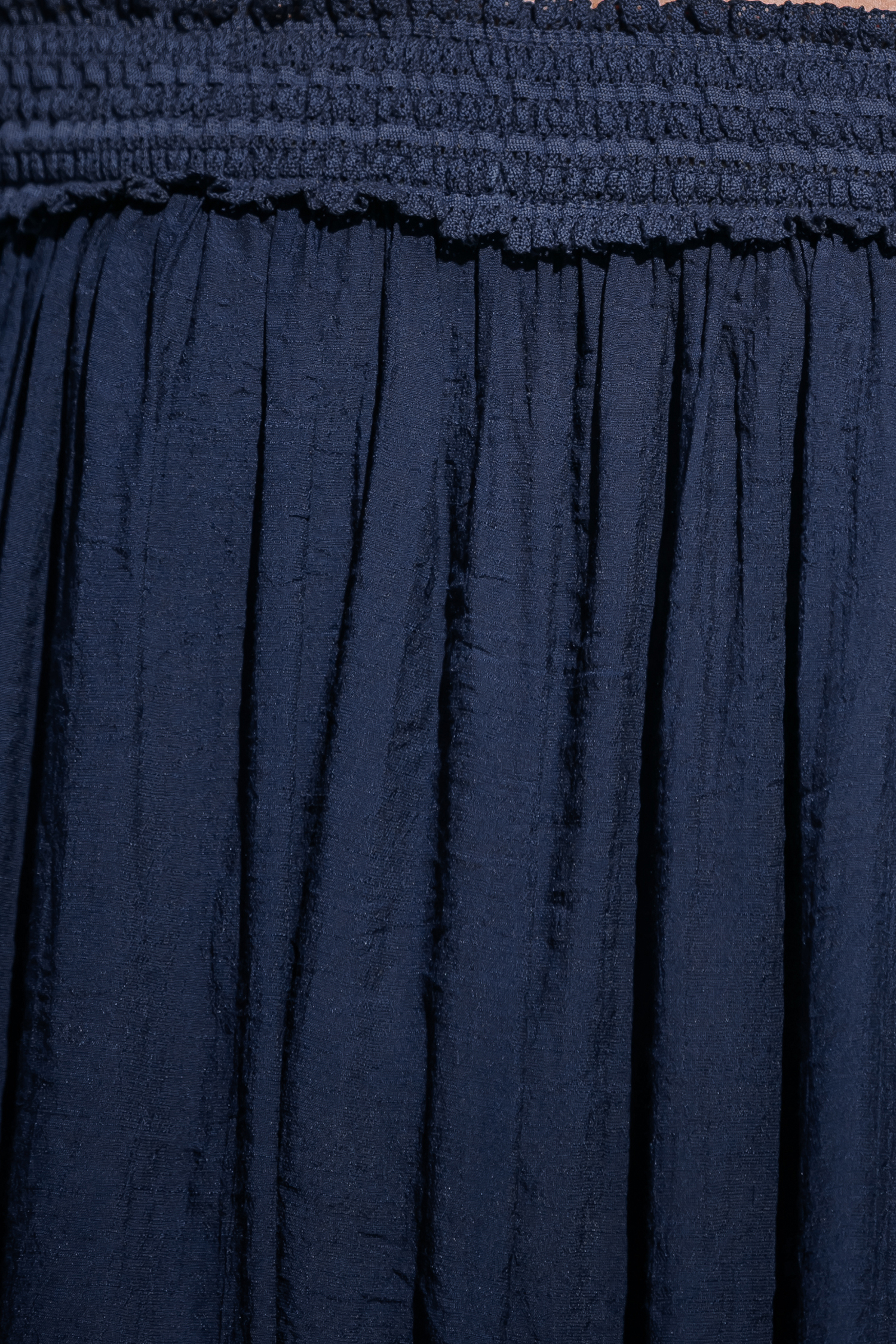 Vestido tipo pareo con dobladillo asimétrico y hombros descubiertos azul marino